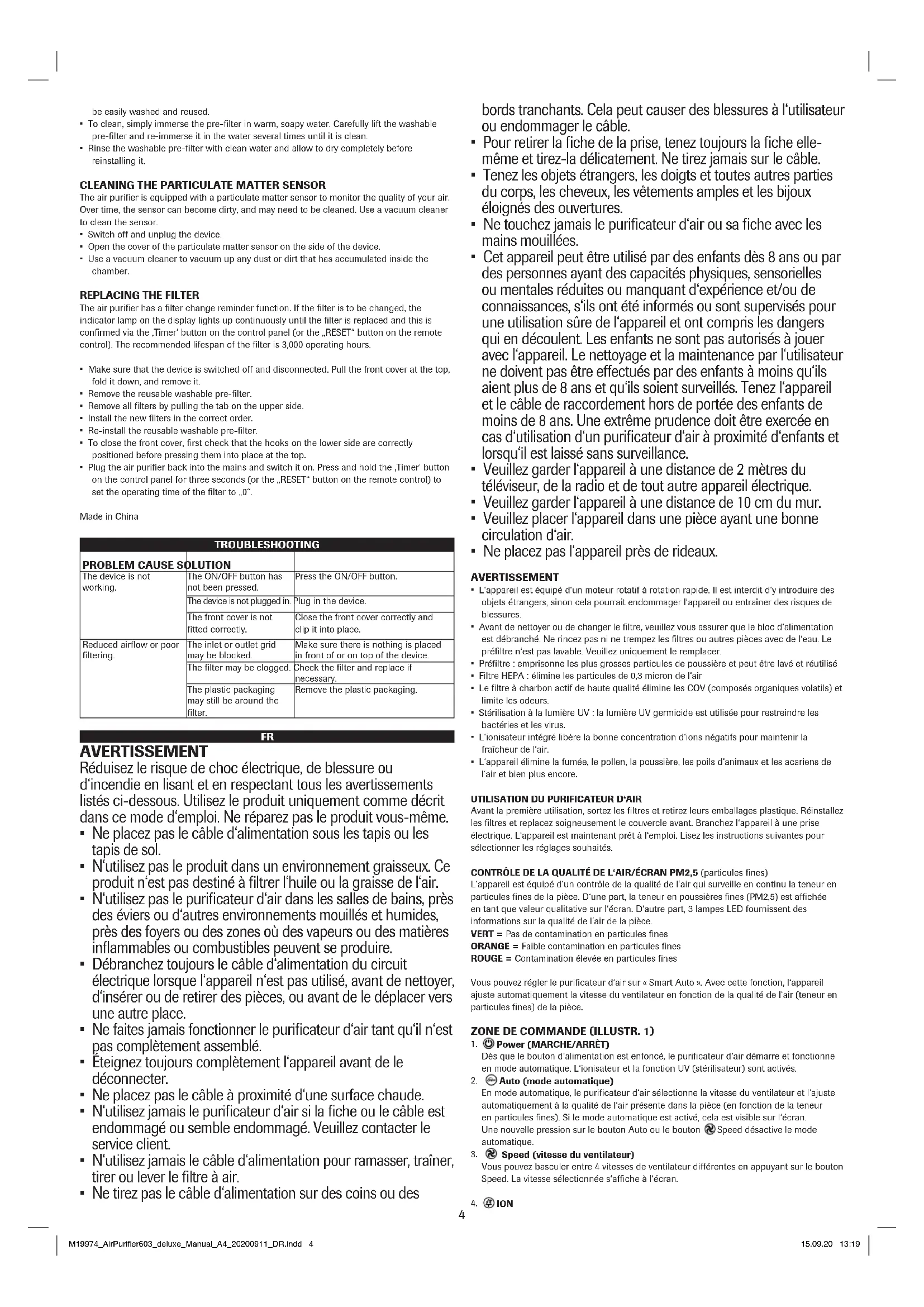 MODE D'EMPLOI AirPurifier Deluxe Livington