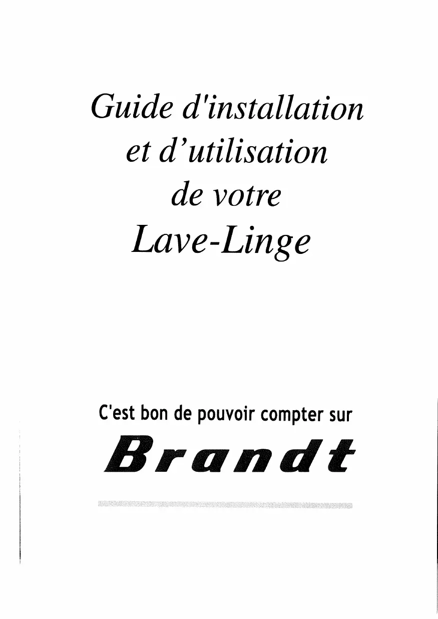Vous venez d'acquerir un Lave-Linge Brandt et nous vous remercions de nous avoir choisis.