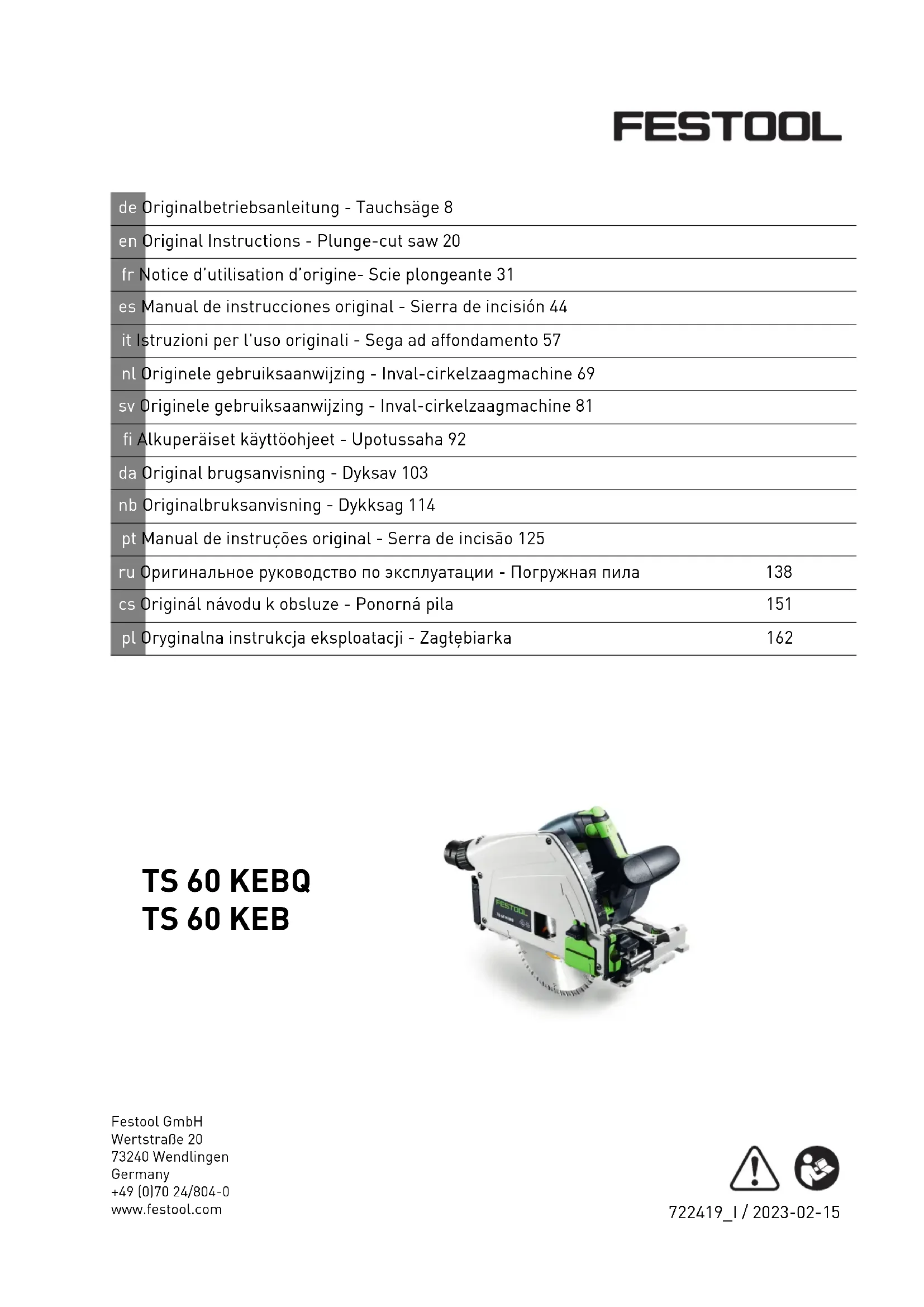 Retrouvez gratuitement la notice de l'appareil TS 60 KEBQ FESTOOL au format PDF.