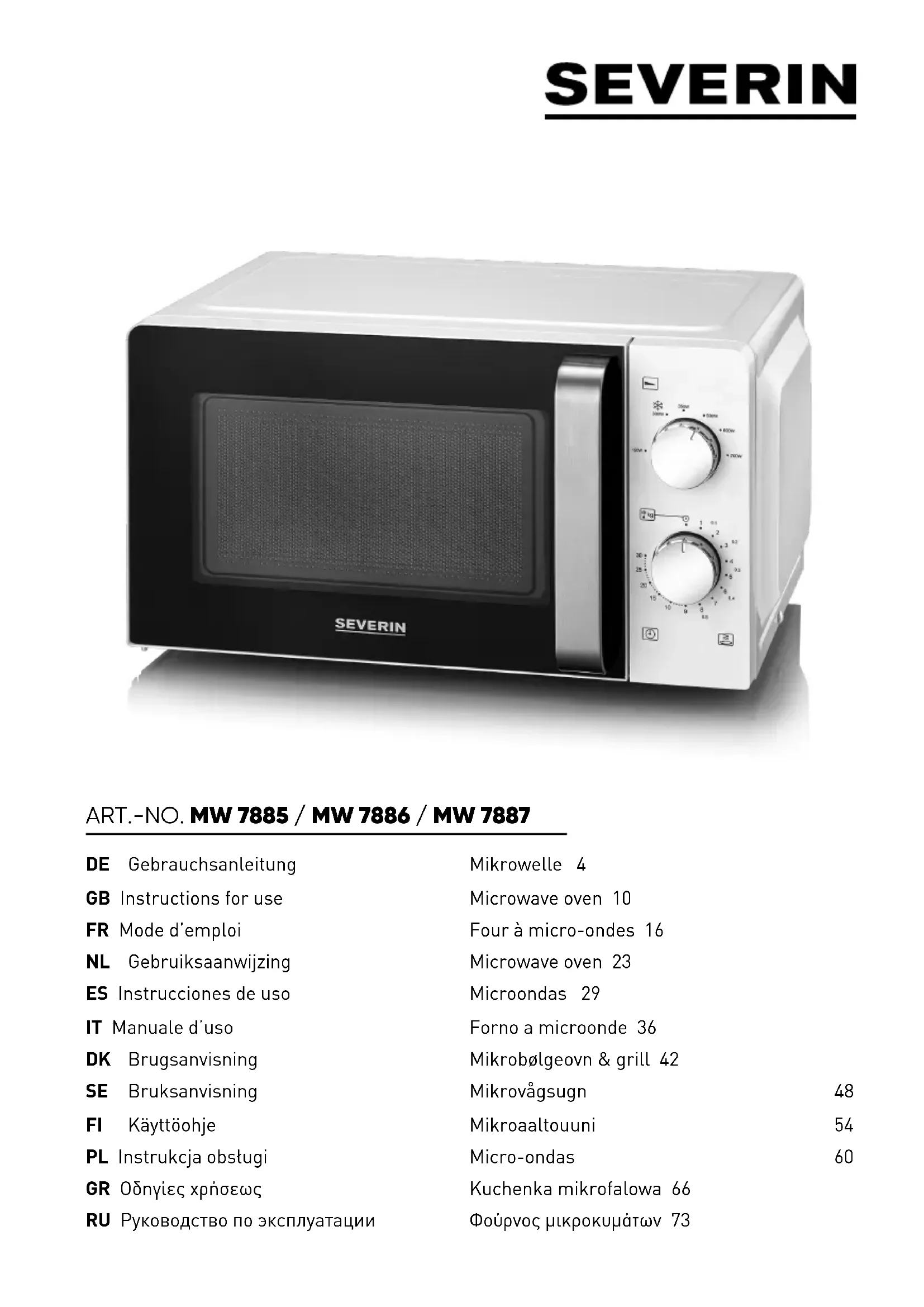 MW 7886 - Four à micro-ondes SEVERIN - Notice d'utilisation et mode d'emploi gratuit