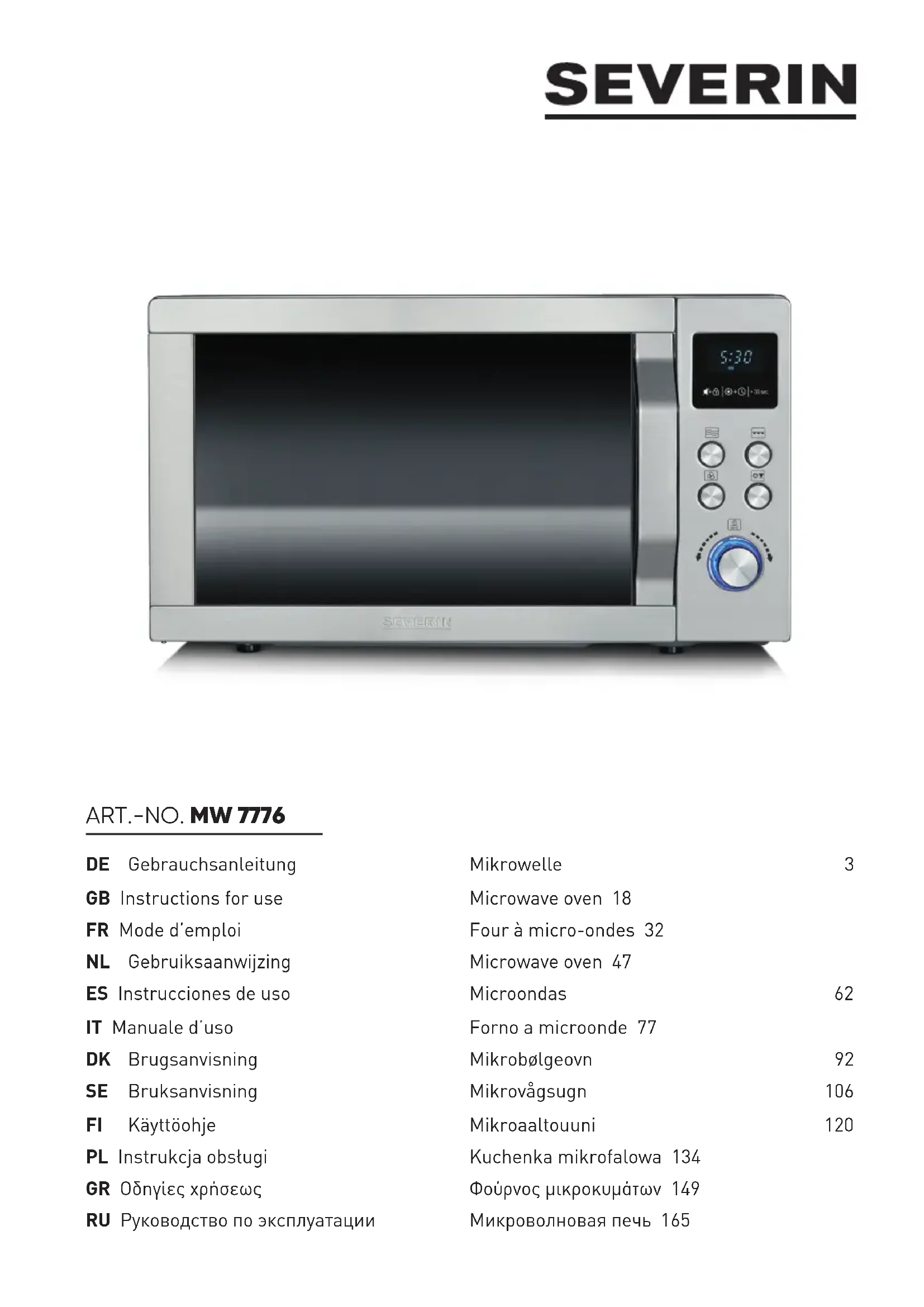 MW 7776 - Four à micro-ondes SEVERIN - Notice d'utilisation et mode d'emploi gratuit