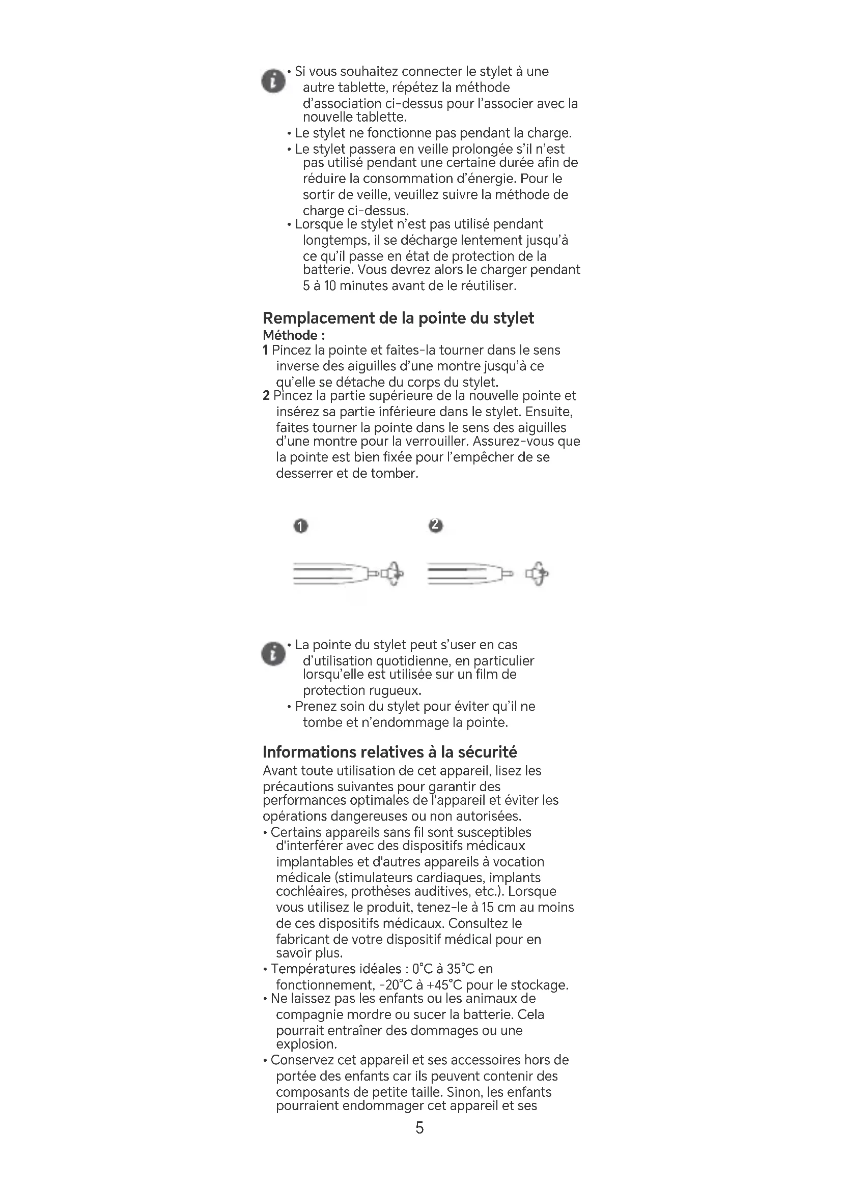 - La pointe du stylet peut s’user en cas d’utilisation quotidienne, en paiculier lorsqu’elle est utilisée sur un lm de protection rugueux.