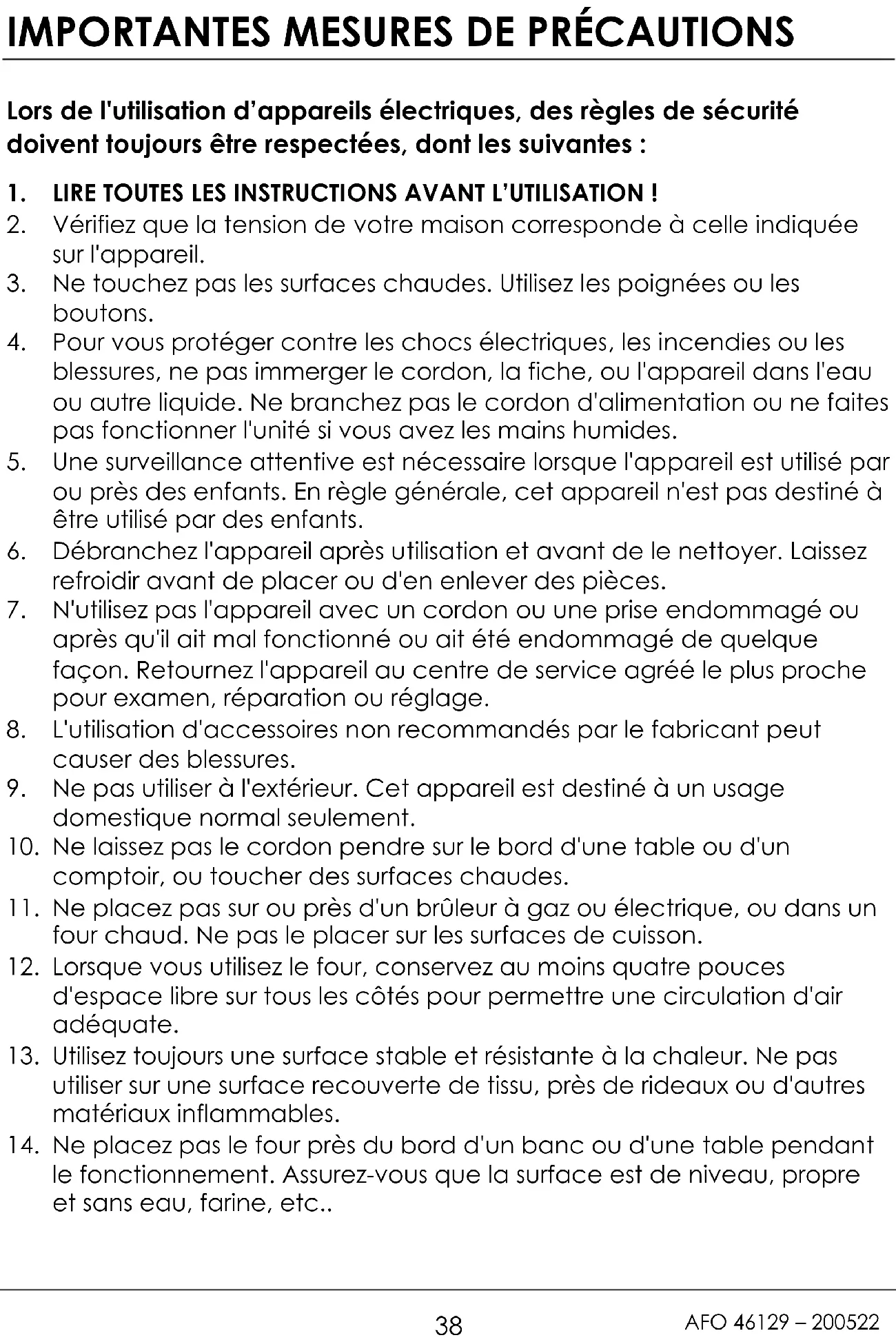 AFO 46129 – 200522 toute trace d'huile qui pourrait rester après la production, nous vous recommandons de faire fonctionner l'appareil pendant 20 minutes, en plaçant le thermostat sur sa température maximale. Conseils :