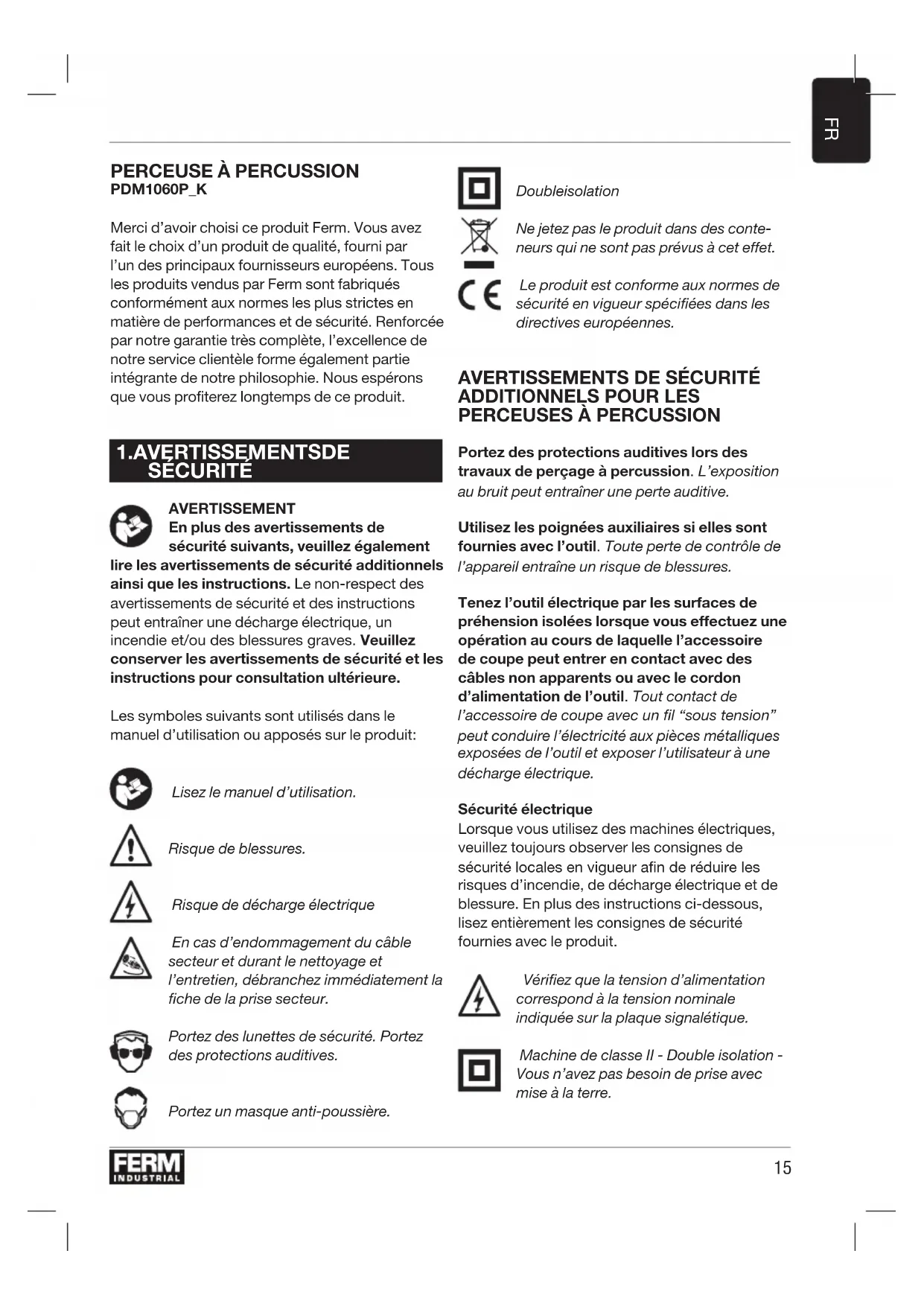 PDM1060P_K - Perceuse Ferm - Notice d'utilisation et mode d'emploi gratuit