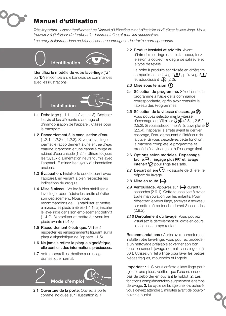 Retrouvez gratuitement la notice de l'appareil WFA1216F BRANDT au format PDF.