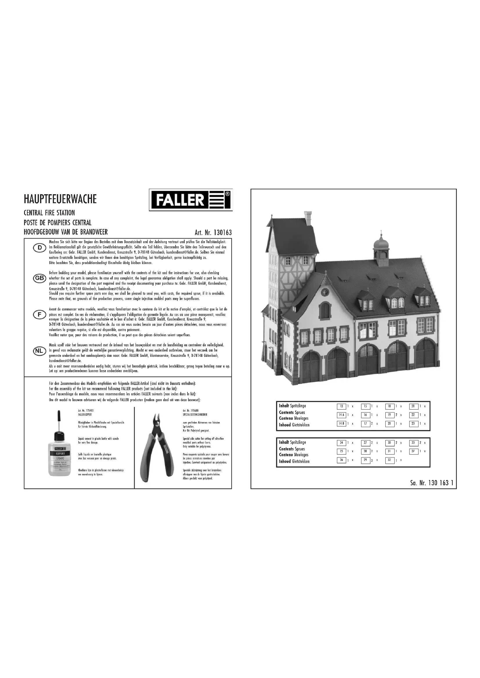 130163 - Maquettisme Faller - Notice d'utilisation et mode d'emploi gratuit