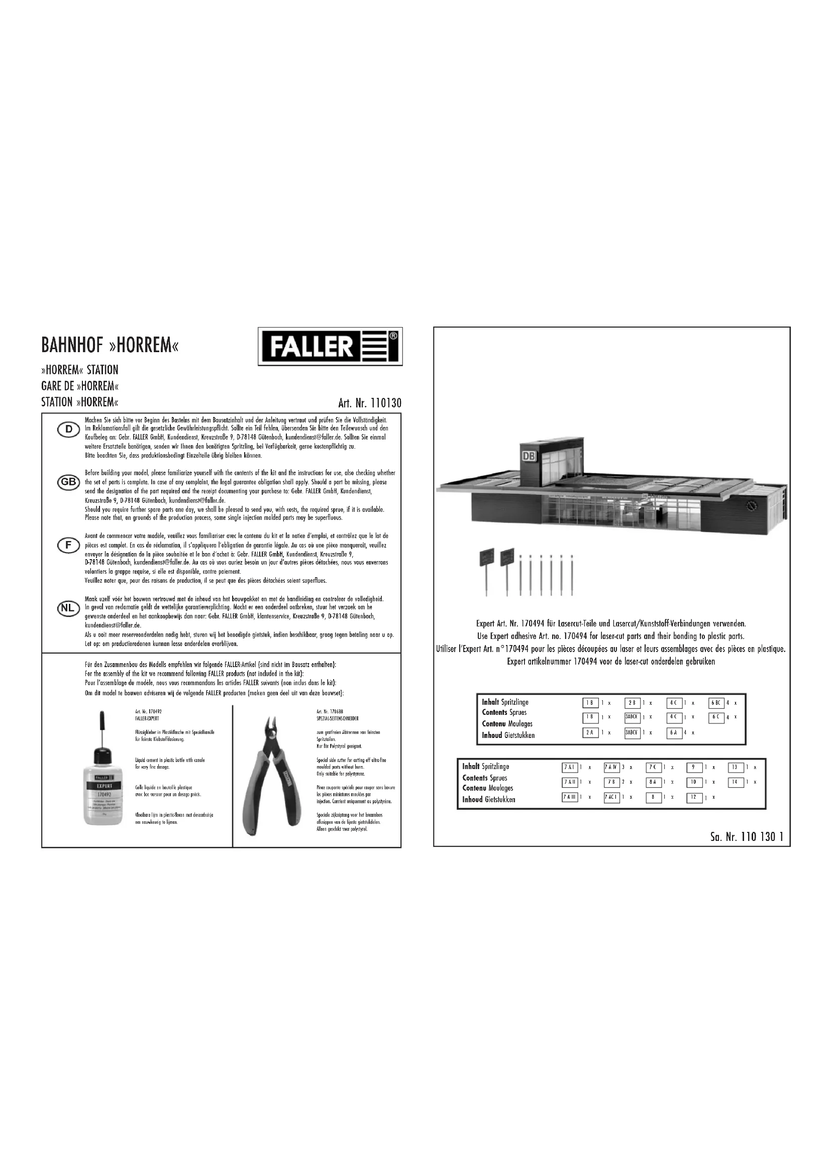 110130 - Maquettisme Faller - Notice d'utilisation et mode d'emploi gratuit