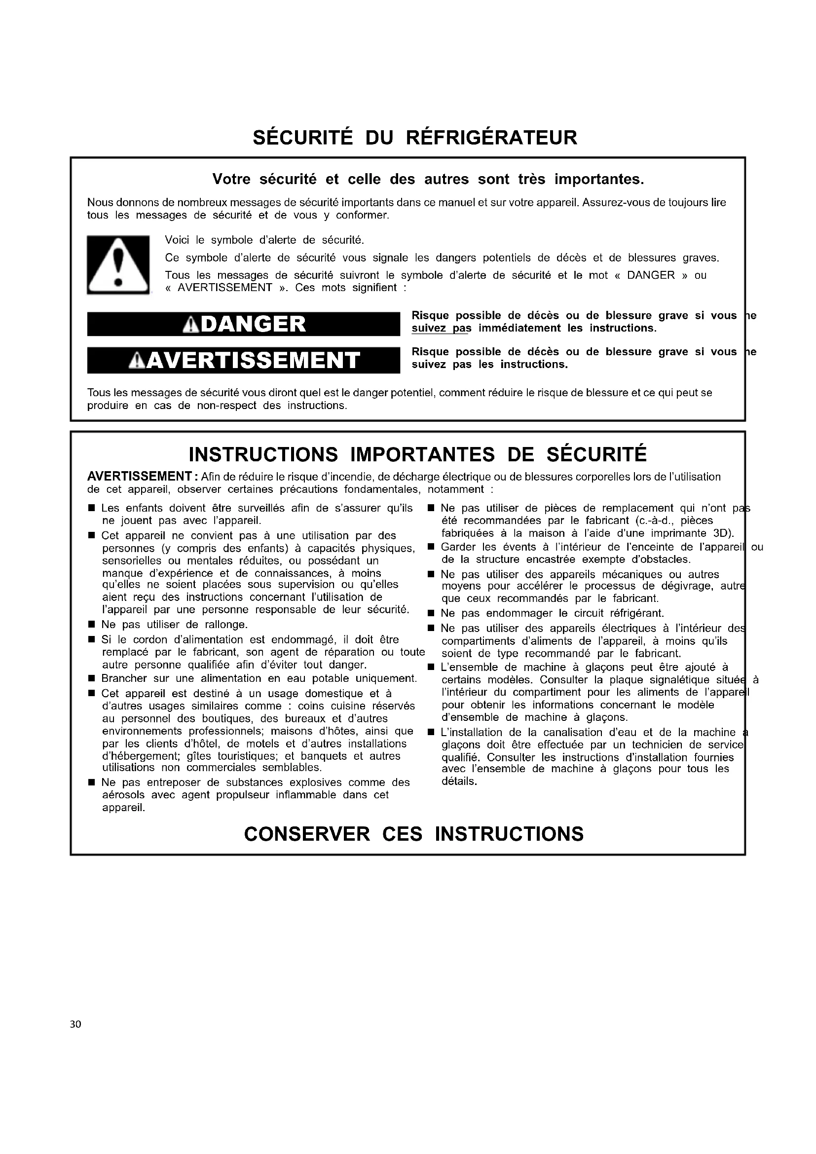 Sécurité du réfrigérateur................................................ 30