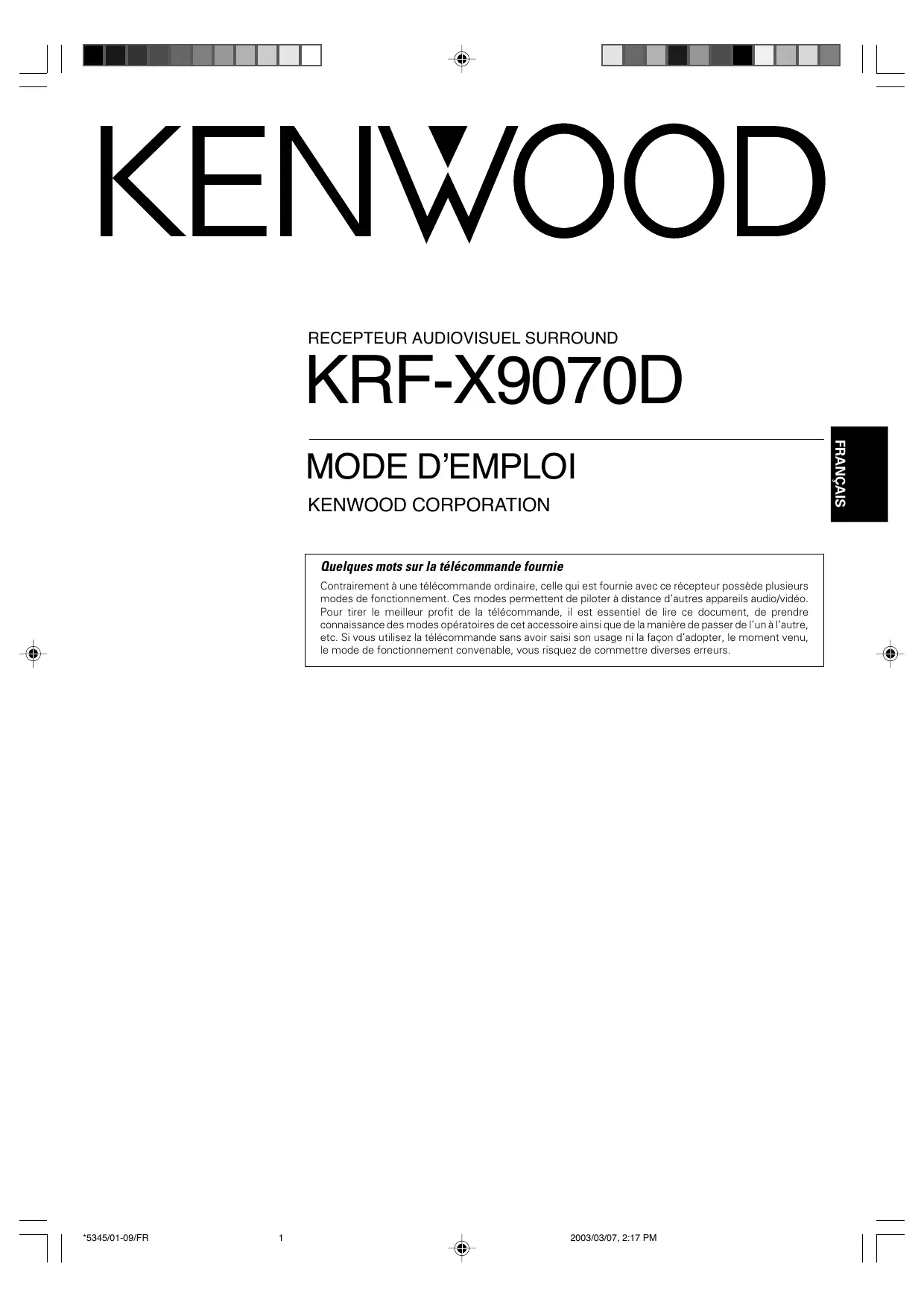 MODE D'EMPLOI KRF-X9070D KENWOOD