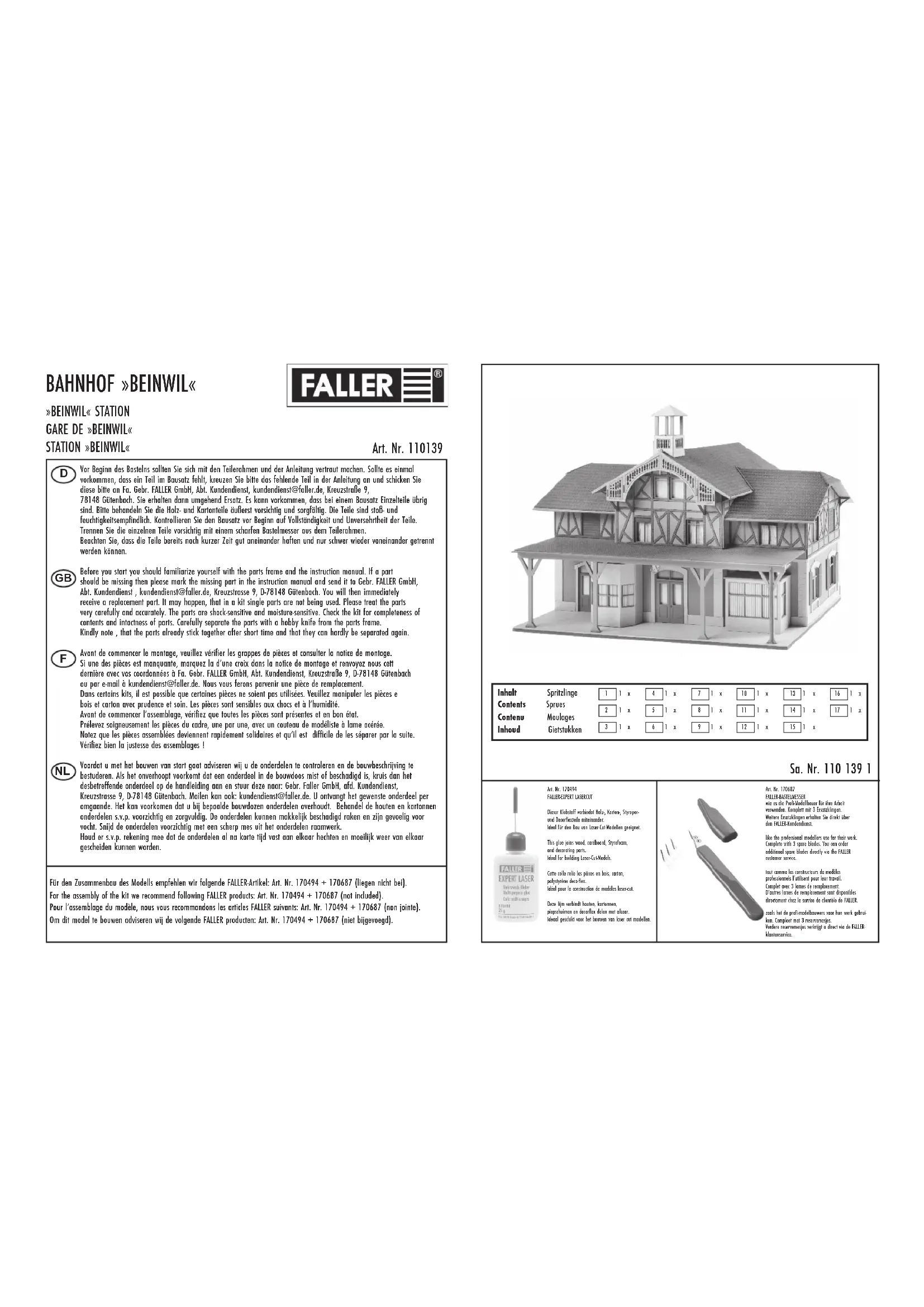 110139 - Maquettisme Faller - Notice d'utilisation et mode d'emploi gratuit