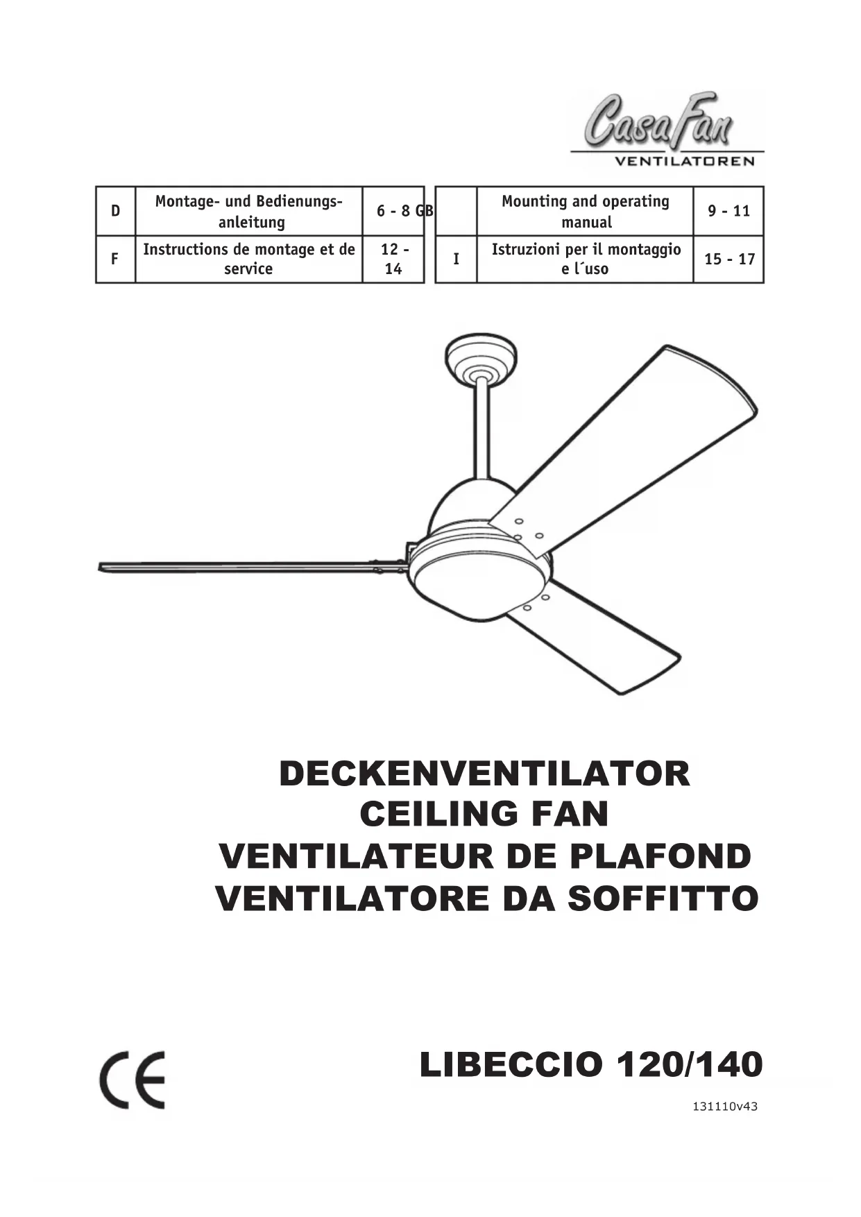 Libeccio - Ventilateur CasaFan - Notice d'utilisation et mode d'emploi gratuit