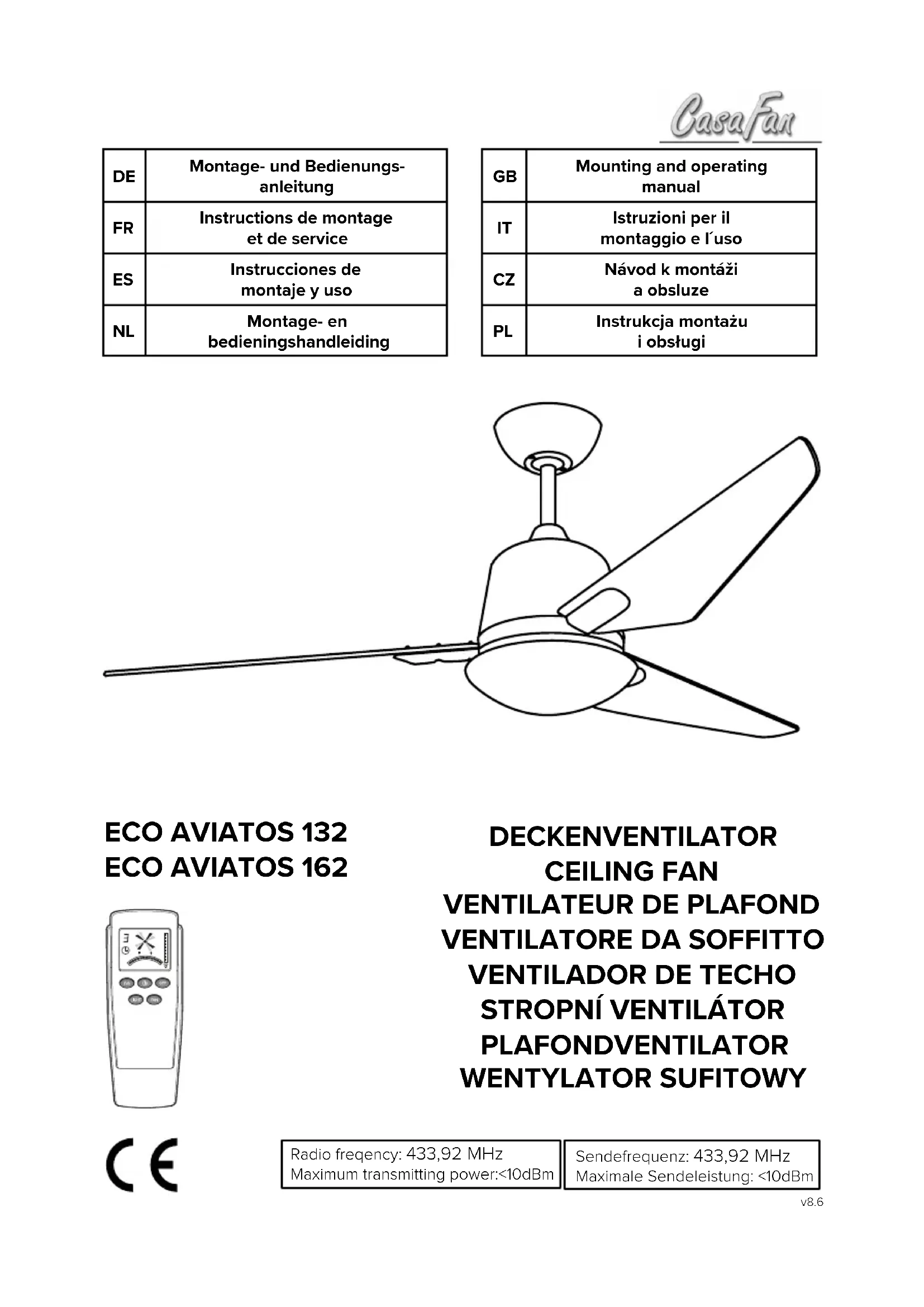 Retrouvez gratuitement la notice de l'appareil Eco Aviatos 132 CasaFan au format PDF.
