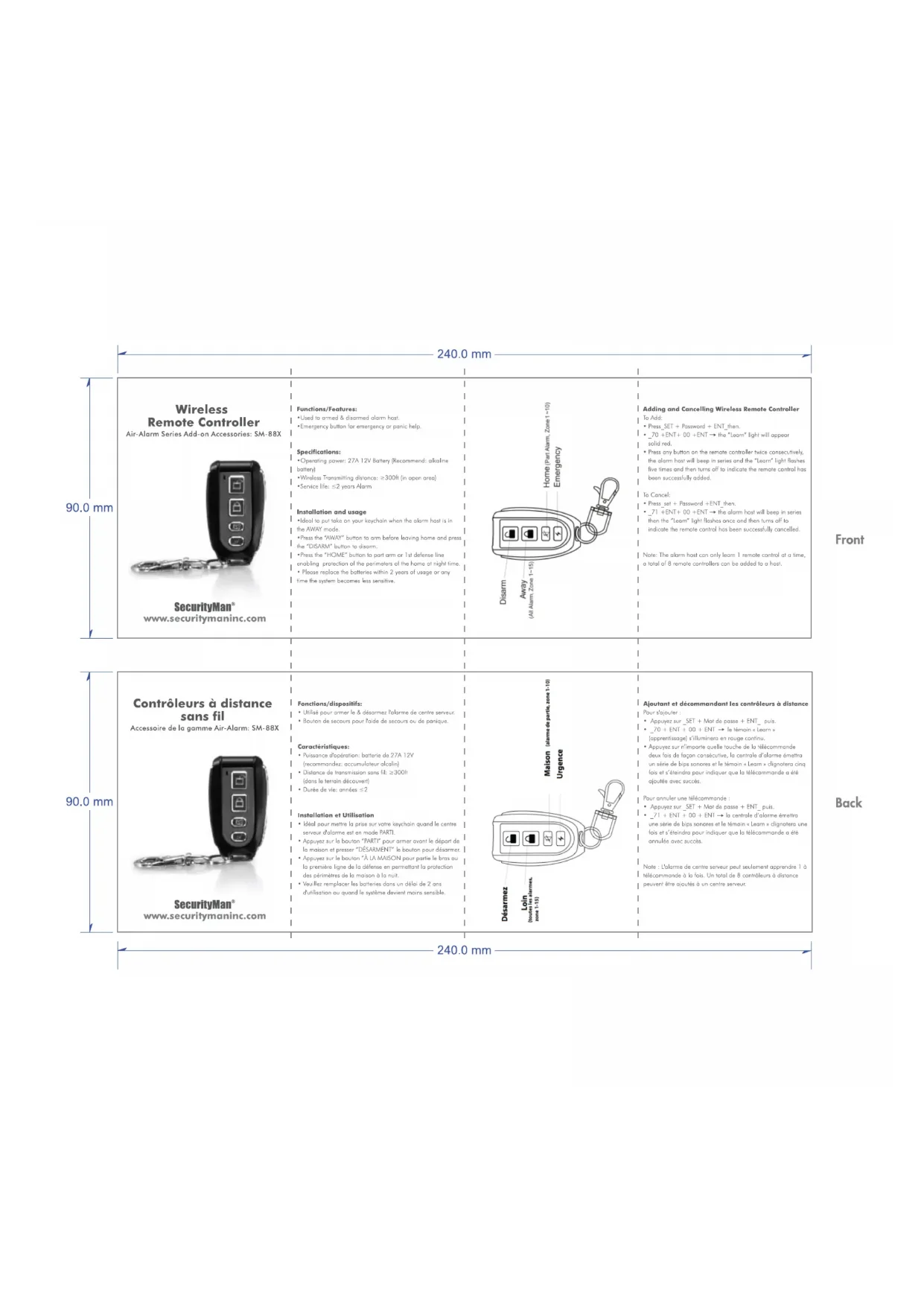 Retrouvez gratuitement la notice de l'appareil SM88X SecurityMan au format PDF.
