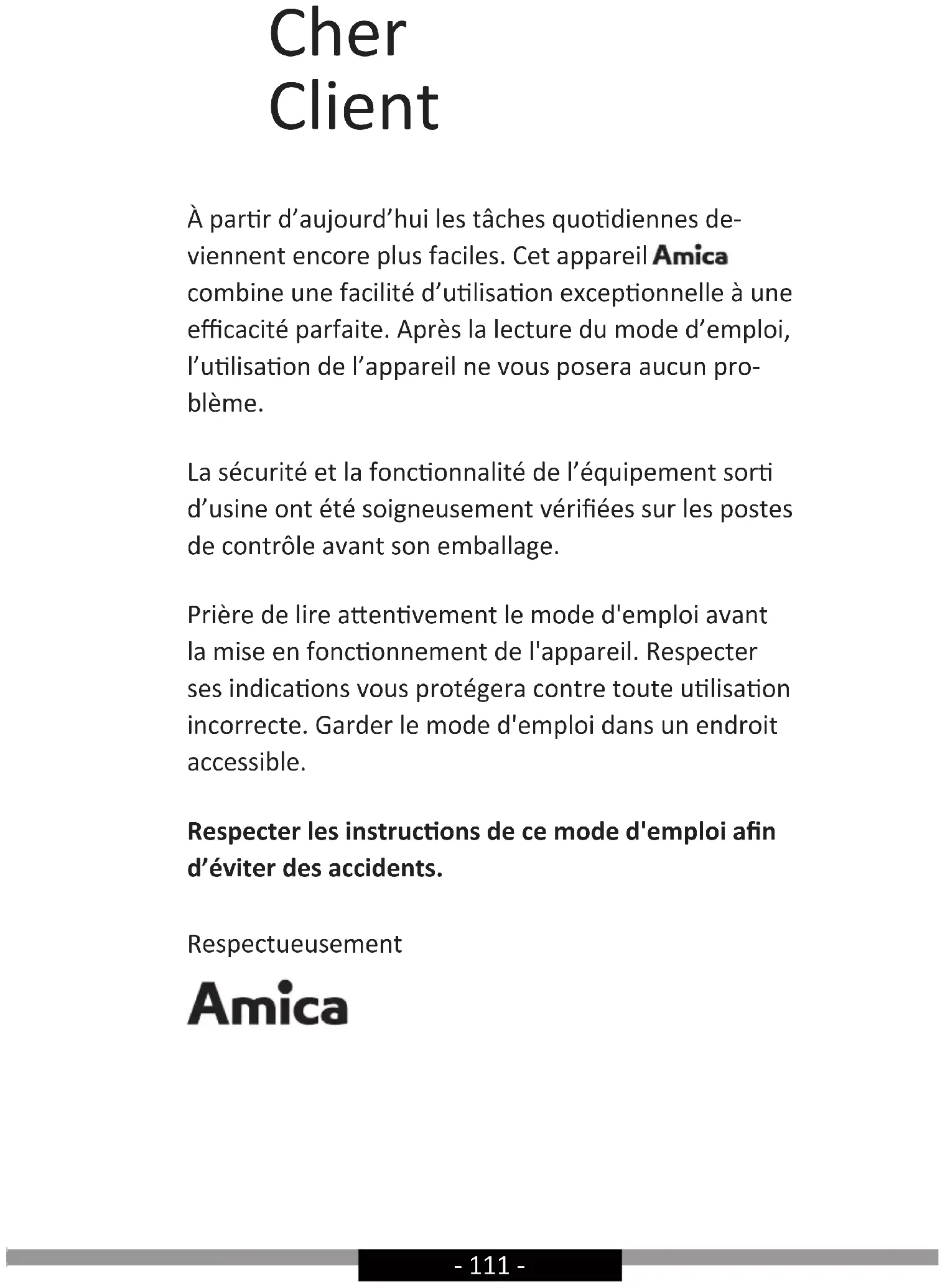 MODE D'EMPLOI KSR 364 150 R AMICA