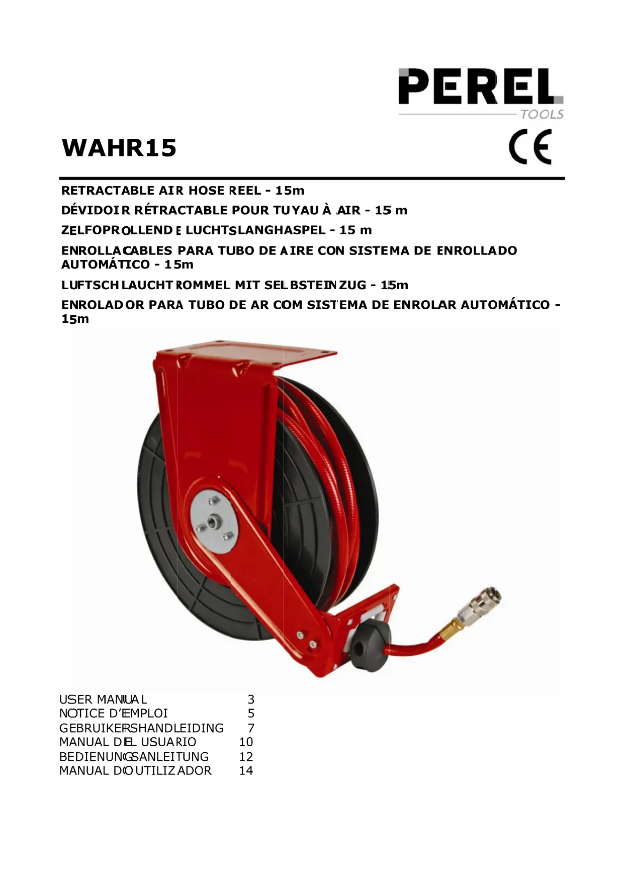 WAHR15 - Dévidoir pour tuyau d'air comprimé Perel - Notice d'utilisation et mode d'emploi gratuit