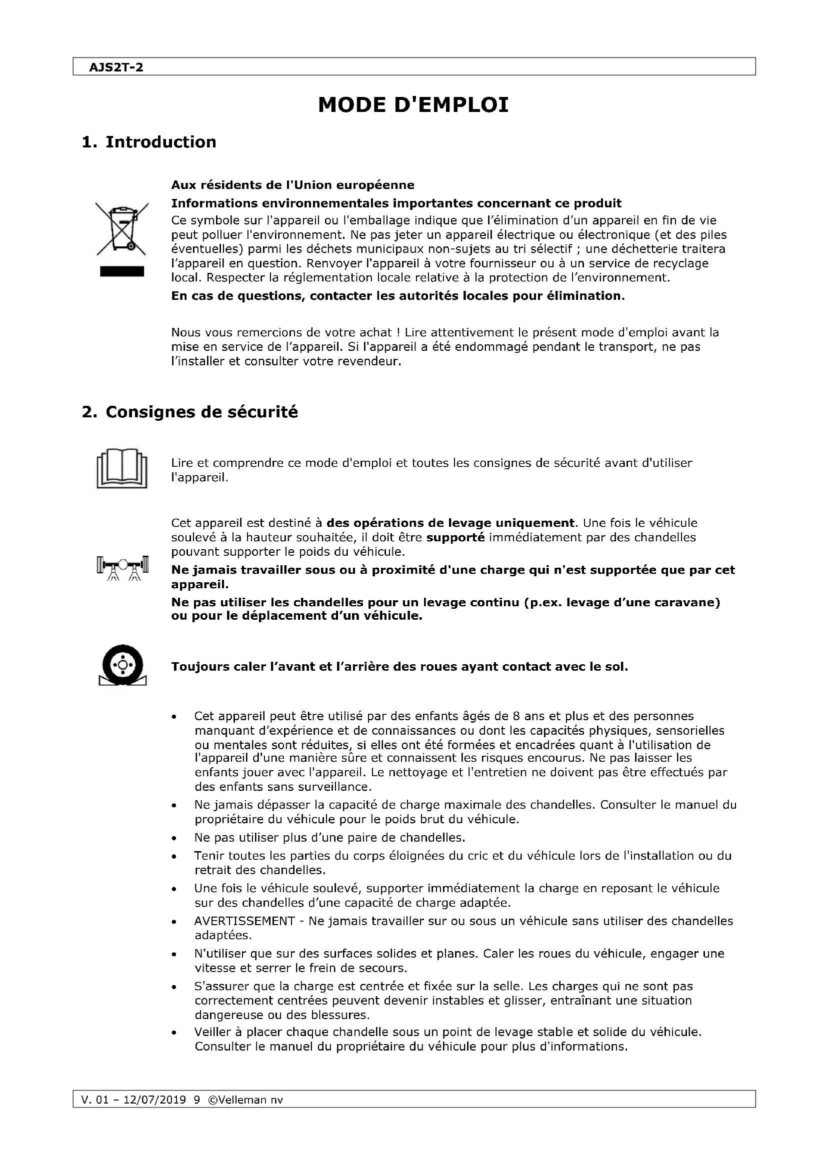 Velleman SA est l’ayant droit des droits d’auteur de ce mode d'emploi. Tous droits mondiaux réservés. Toute reproduction, traduction, copie ou diffusion, intégrale ou partielle, du contenu de ce mode d'emploi par quelque procédé ou sur tout support électronique que ce soit est interdite sans l’accord préalable écrit de l’ayant droit.AJS2T-2