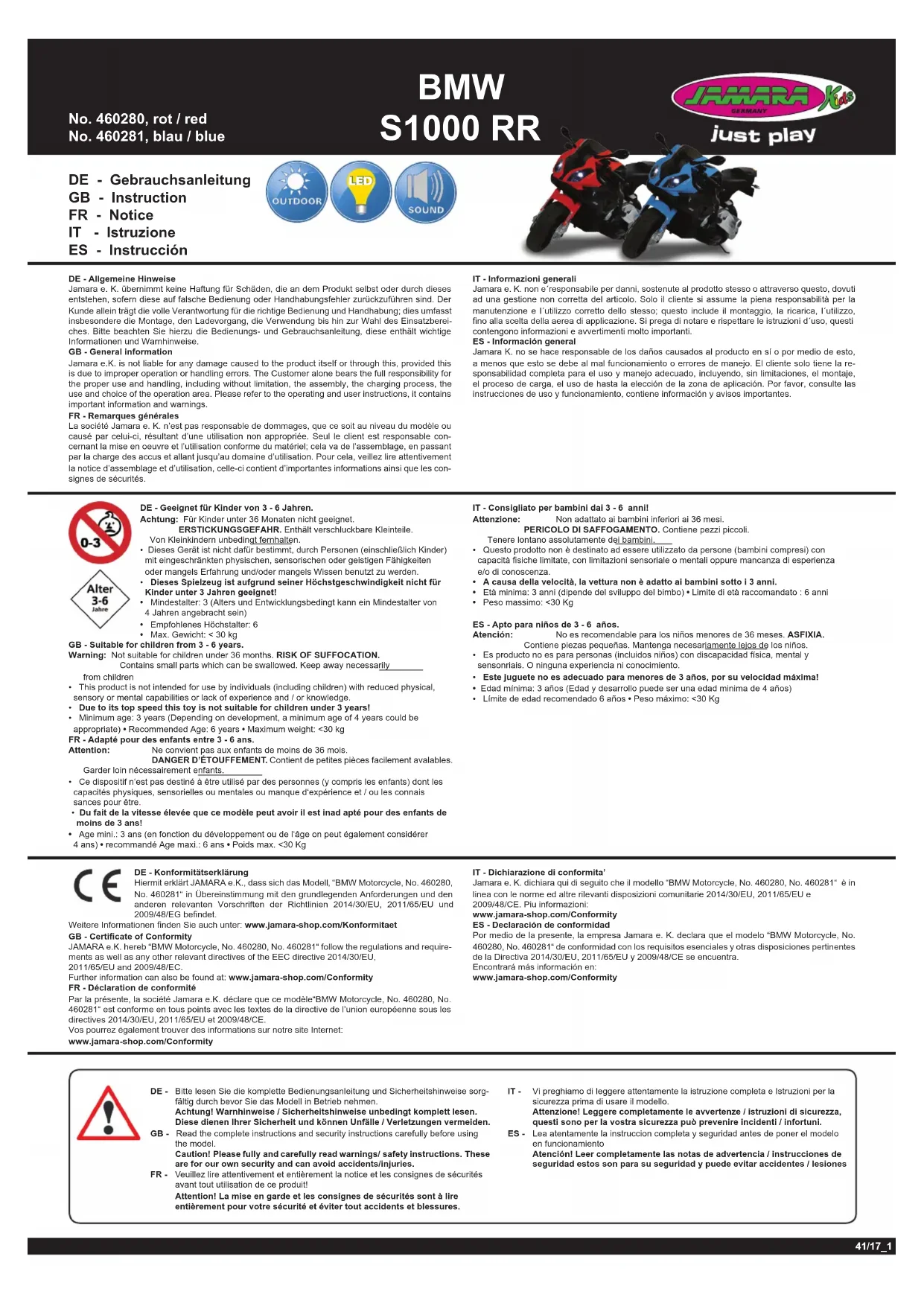 BMW S1000 RR - Jouets Jamara - Notice d'utilisation et mode d'emploi gratuit