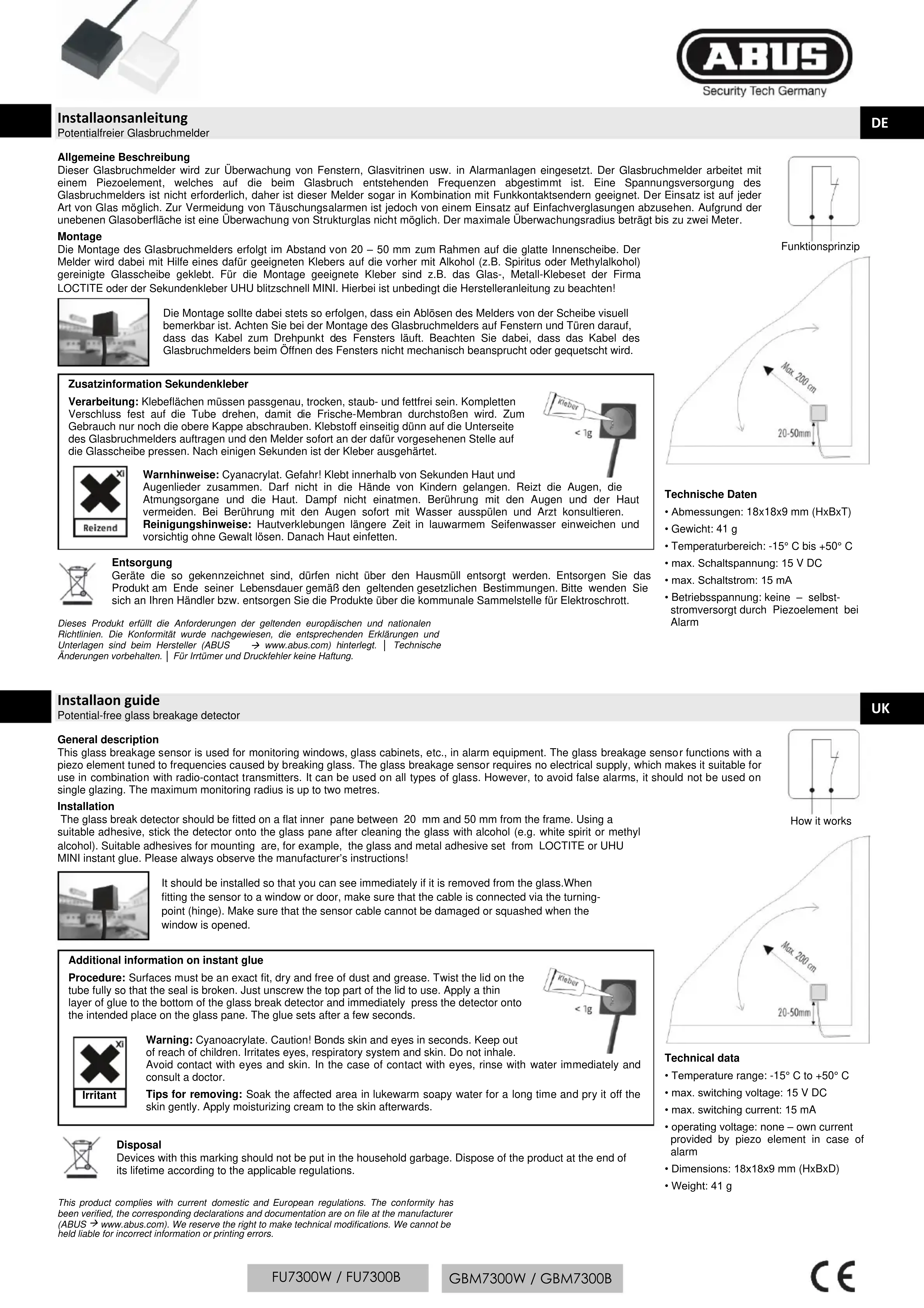 Retrouvez gratuitement la notice de l'appareil FU7300B ABUS au format PDF.