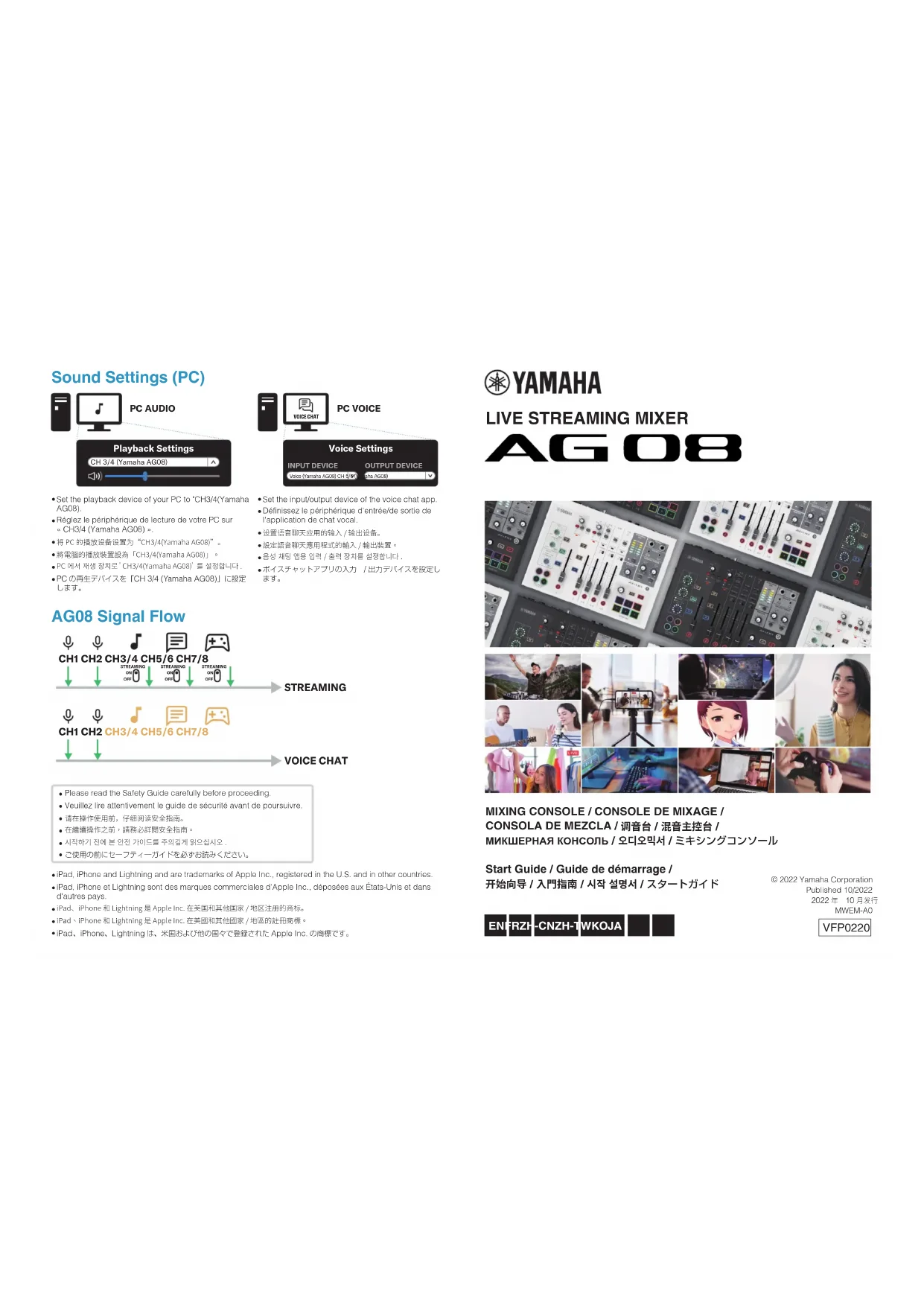 Retrouvez gratuitement la notice de l'appareil AG08 YAMAHA au format PDF.