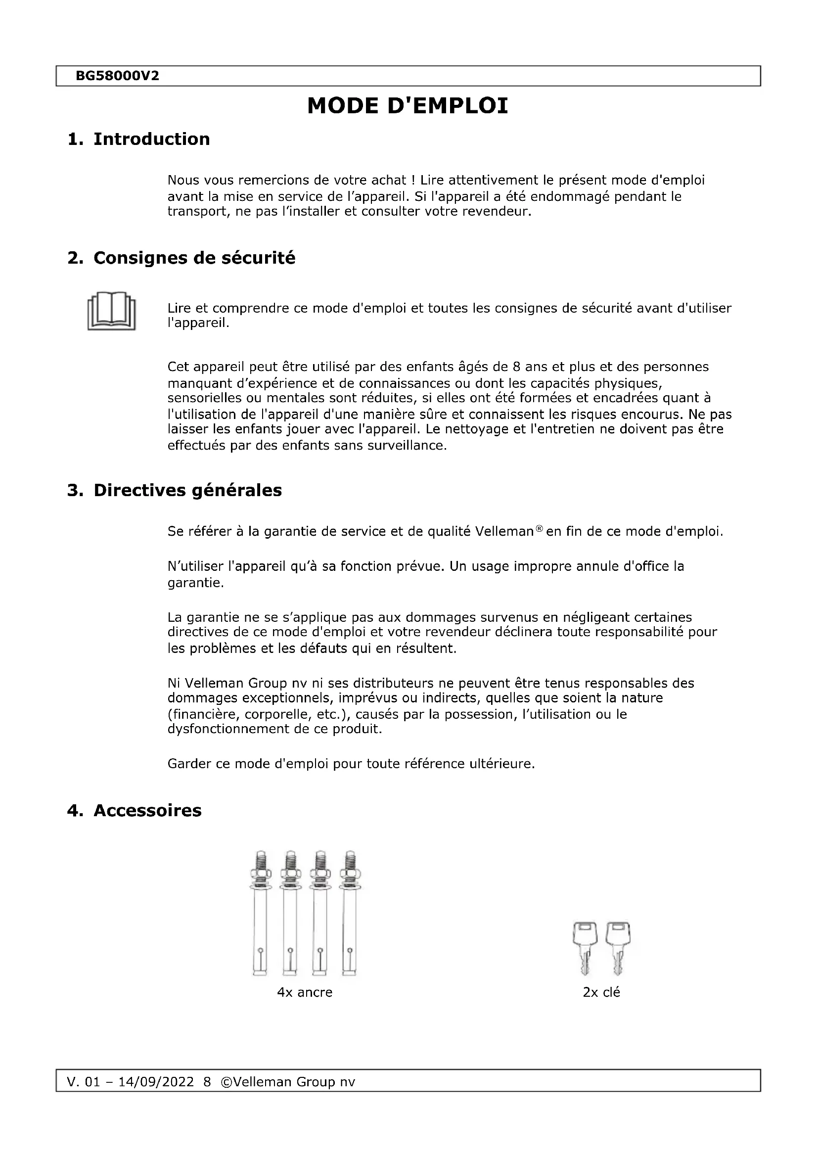 V. 01 – 14/09/2022 10 ©Velleman Group nv