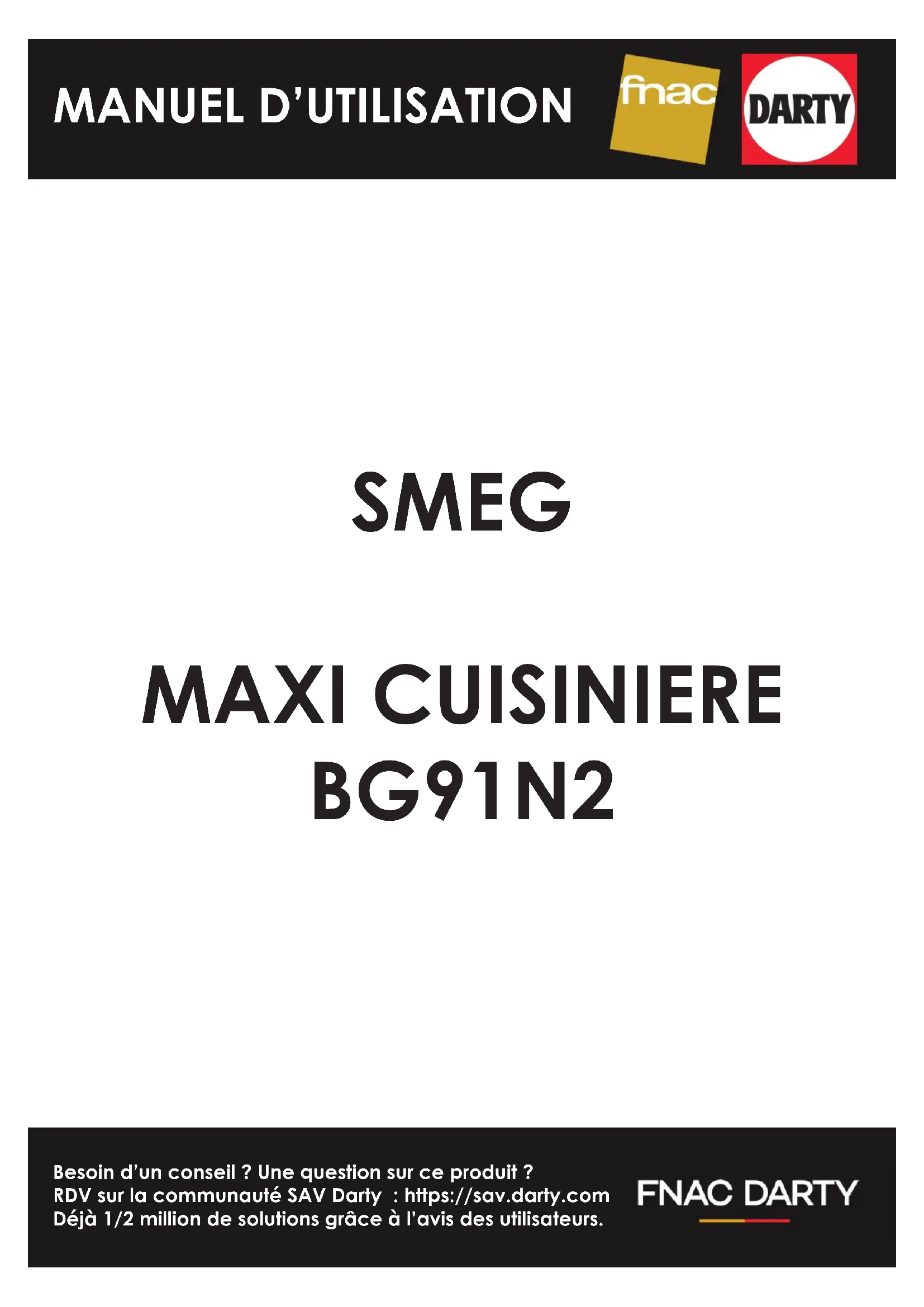 Besoin d’un conseil ? Une question sur ce produit ? RDV sur la communauté SAV Darty : https://sav.darty.com Déjà 1/2 million de solutions grâce à l’avis des utilisateurs. SMEG MAXI CUISINIERE BG91N2 MANUEL D’UTILISATIONSommaire