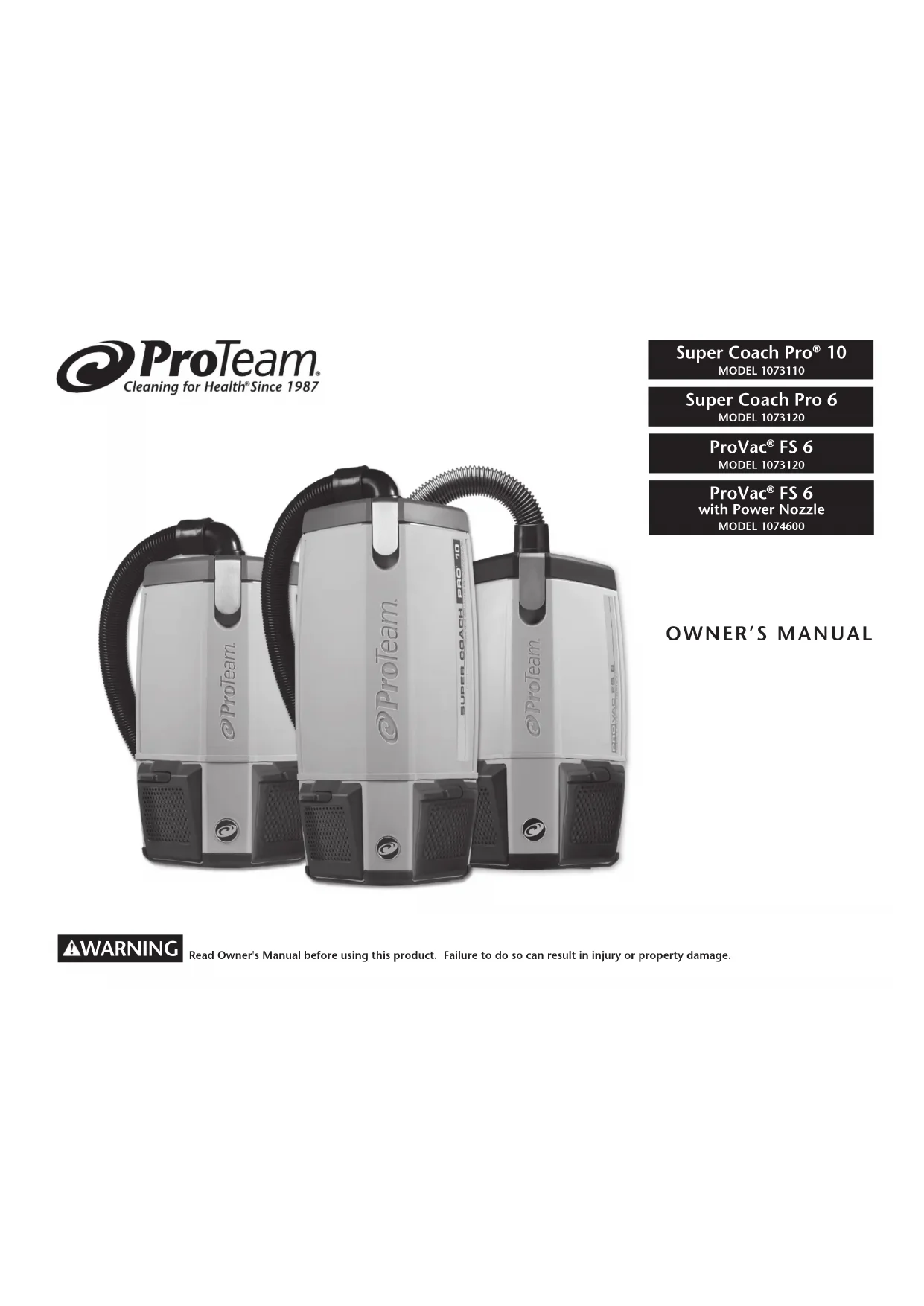 Super Coach Pro 10 107537 - Aspirateur ProTeam - Notice d'utilisation et mode d'emploi gratuit