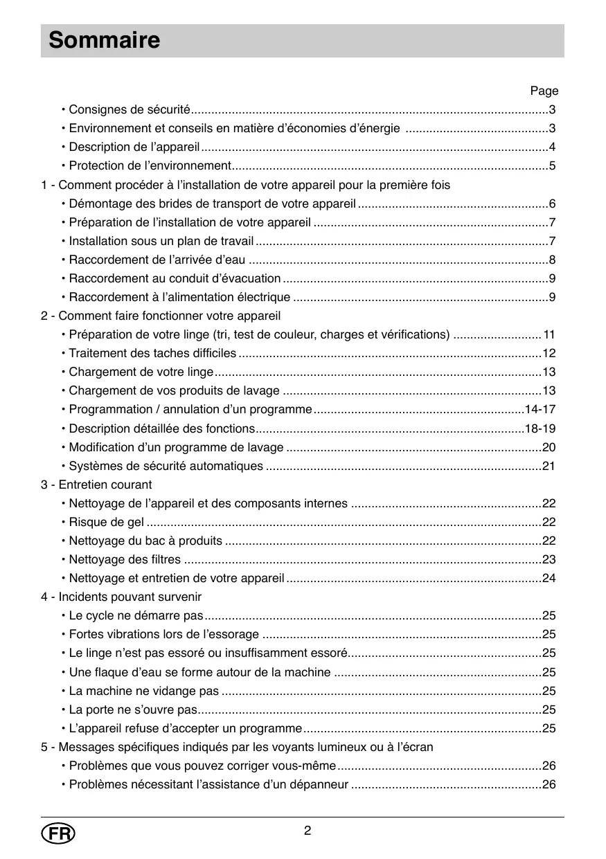 - Préparation de votre linge (tri, test de couleur, charges et vérifications)........................... 11