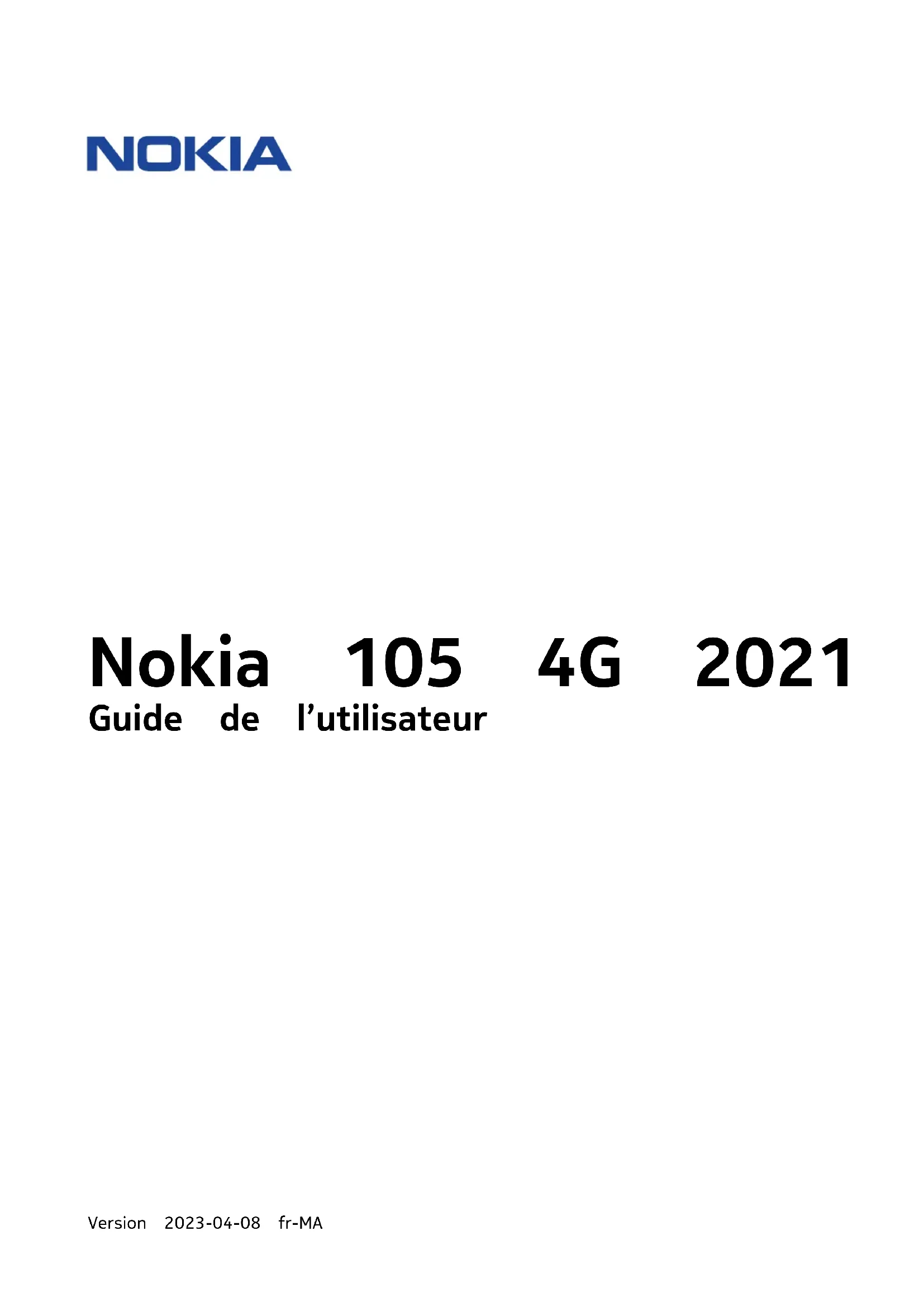 - Nokia 105 4G 2021 Guide de l’utilisateur Version 2023-04-08 fr-MANokia 105 4G 2021 Guide de l'utilisateur Sommaire 1 À propos de ce guide d’utilisation 4 2 Prise en main 5 Touches et composants p. 5