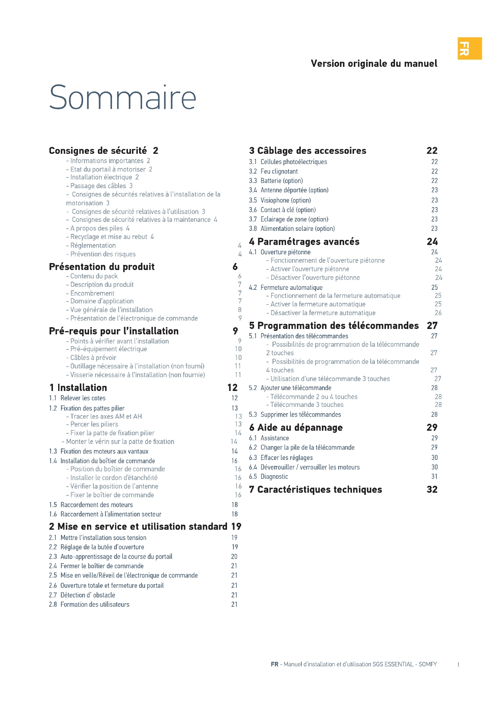 PH PZ2 1712 FR - Manuel d’installation et d’utilisation SGS ESSENTIAL - SOMFY