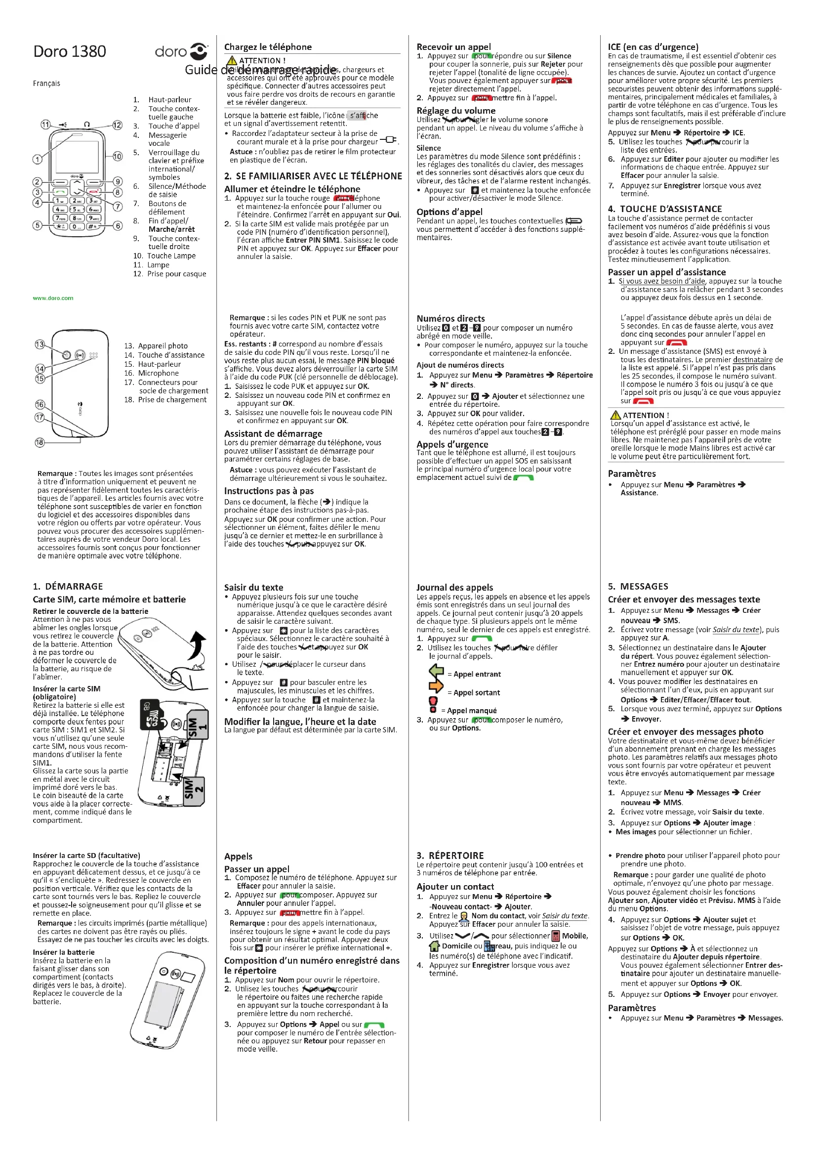 1380 - Téléphone mobile DORO - Notice d'utilisation et mode d'emploi gratuit