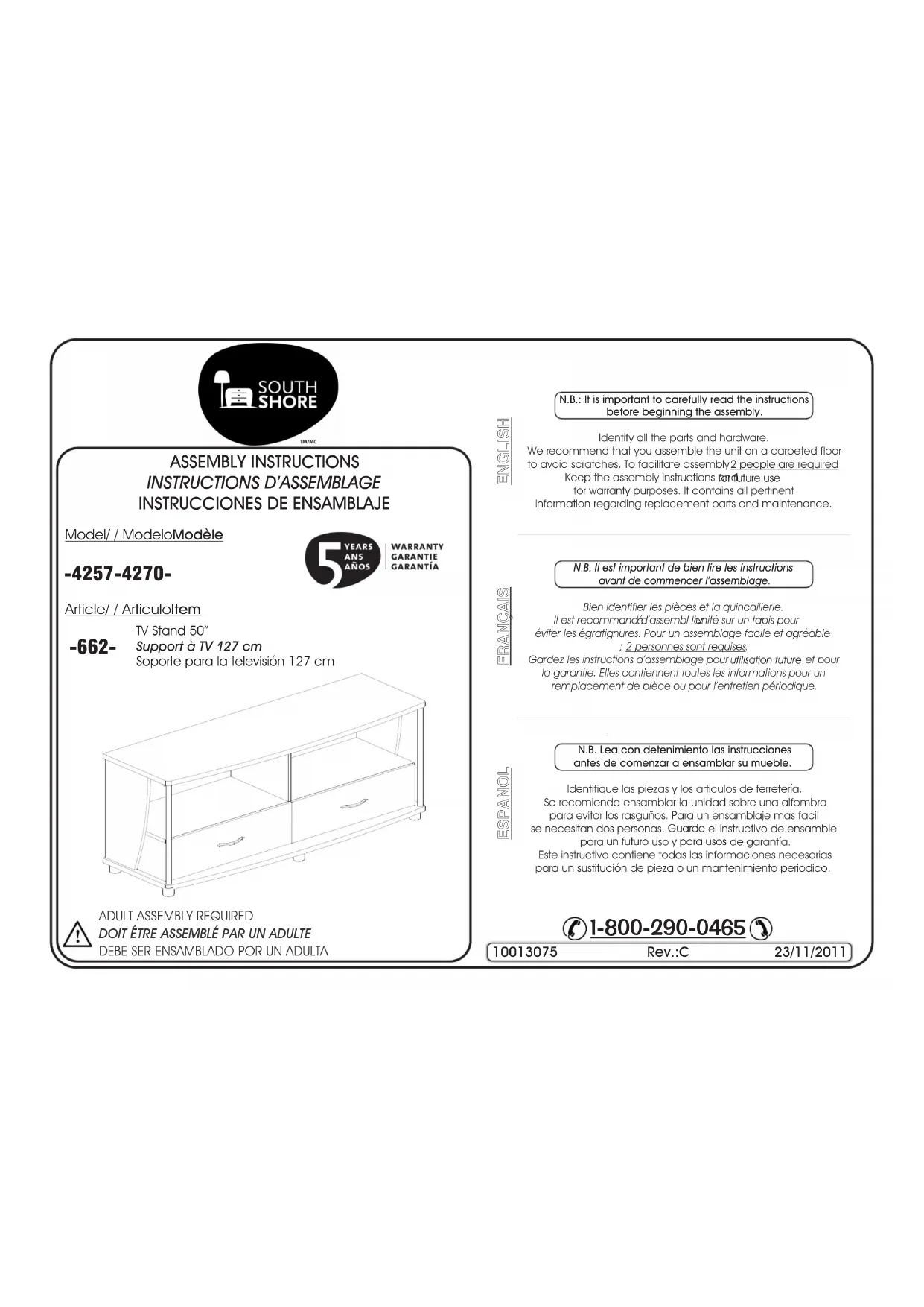 City Life 4257662 - Meuble TV South Shore - Notice d'utilisation et mode d'emploi gratuit
