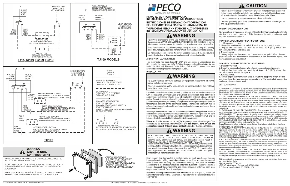 TF115023 - Thermostat PECO - Notice d'utilisation et mode d'emploi gratuit
