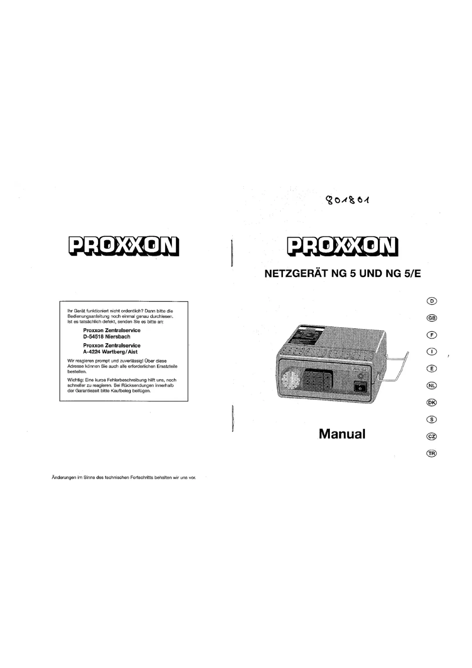 Retrouvez gratuitement la notice de l'appareil NG 5E PROXXON au format PDF.