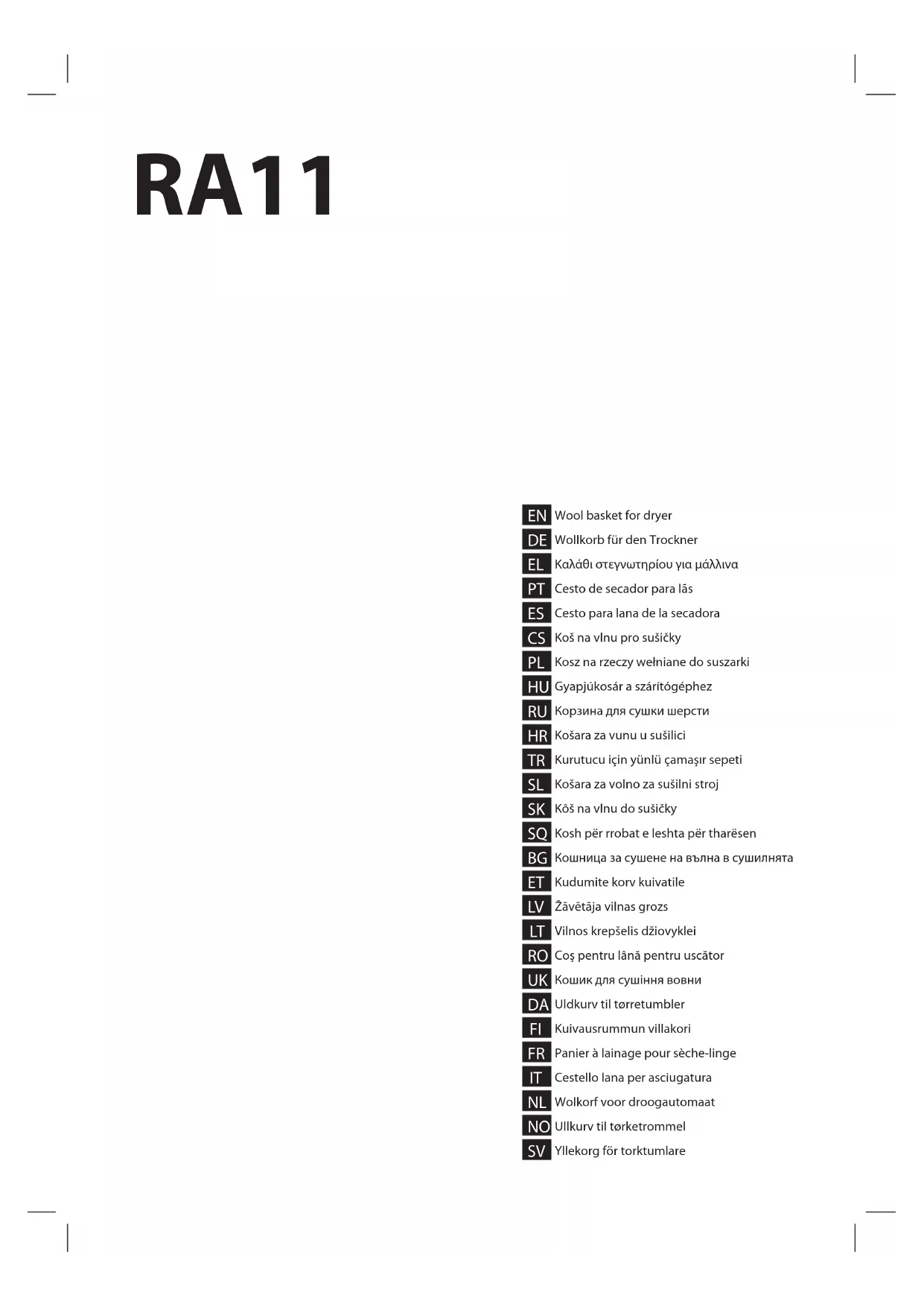RA11 - Accessoire pour sèche-linge AEG - Notice d'utilisation et mode d'emploi gratuit