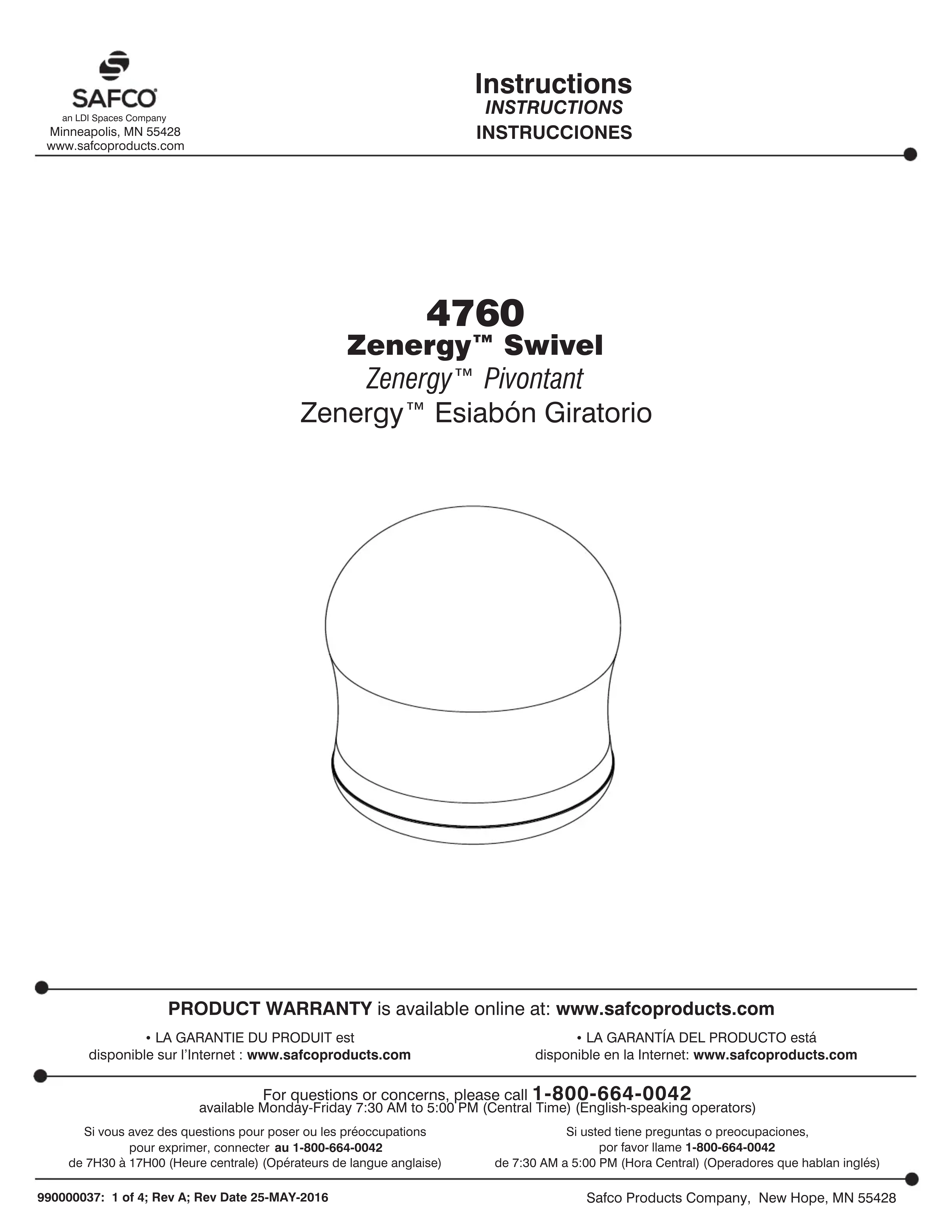 Retrouvez gratuitement la notice de l'appareil Zenergy 4760 Safco au format PDF.