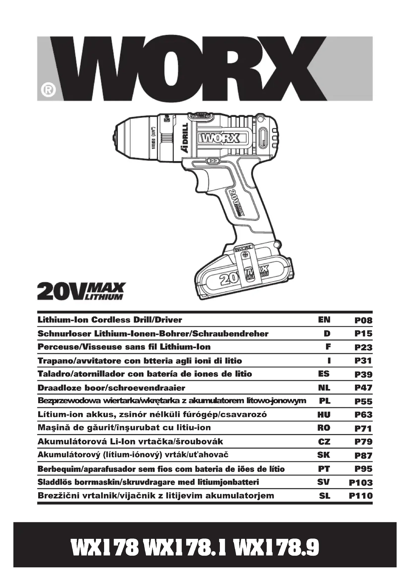 WX178.9 - Perceuse WORX - Notice d'utilisation et mode d'emploi gratuit