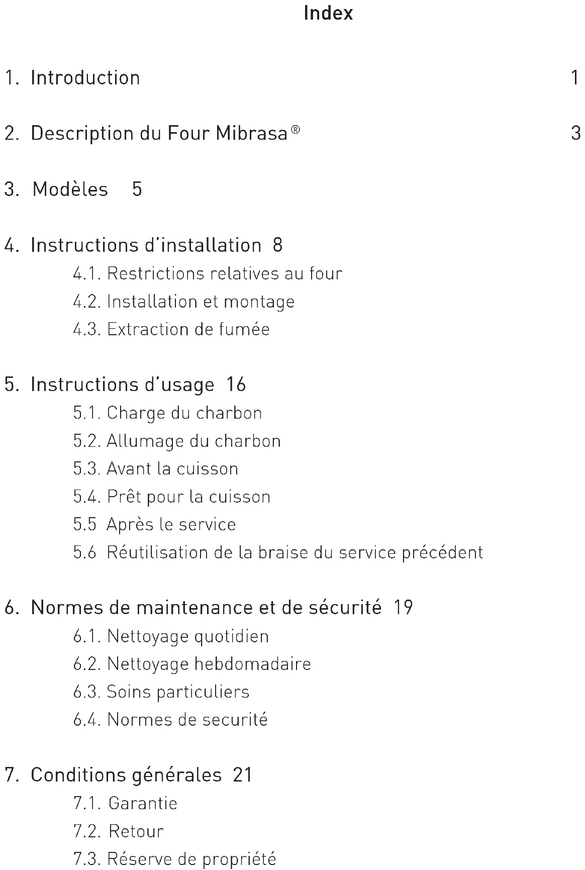 7.1. Garantie 7.2. Retour 7.3. Réserve de propriété1 Notre four Mibrasa