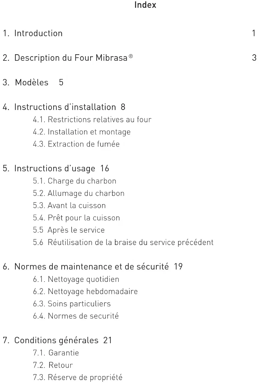7.1. Garantie 7.2. Retour 7.3. Réserve de propriété1 Notre four Mibrasa
