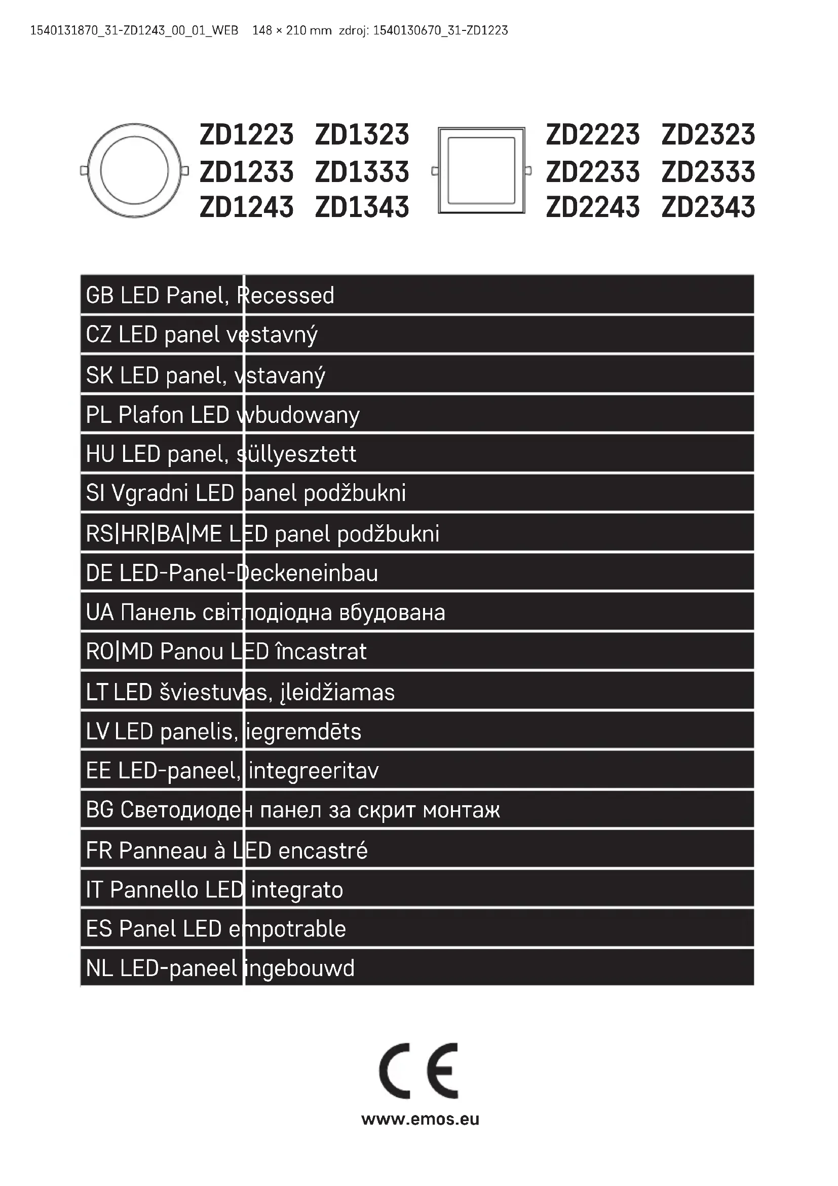 ZD1243 - Éclairage LED Emos - Notice d'utilisation et mode d'emploi gratuit
