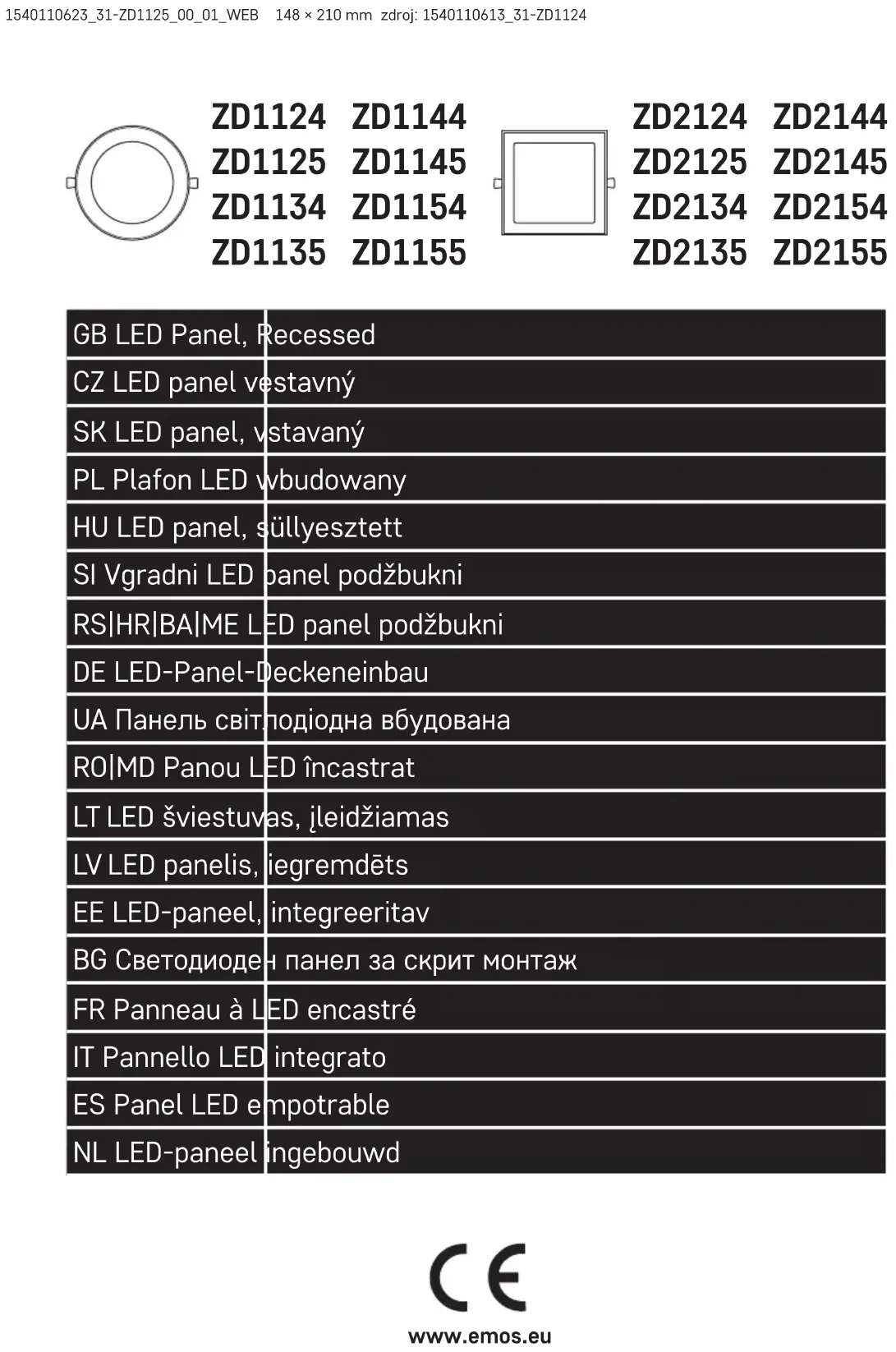 ZD1125 - Éclairage LED encastrable Emos - Notice d'utilisation et mode d'emploi gratuit