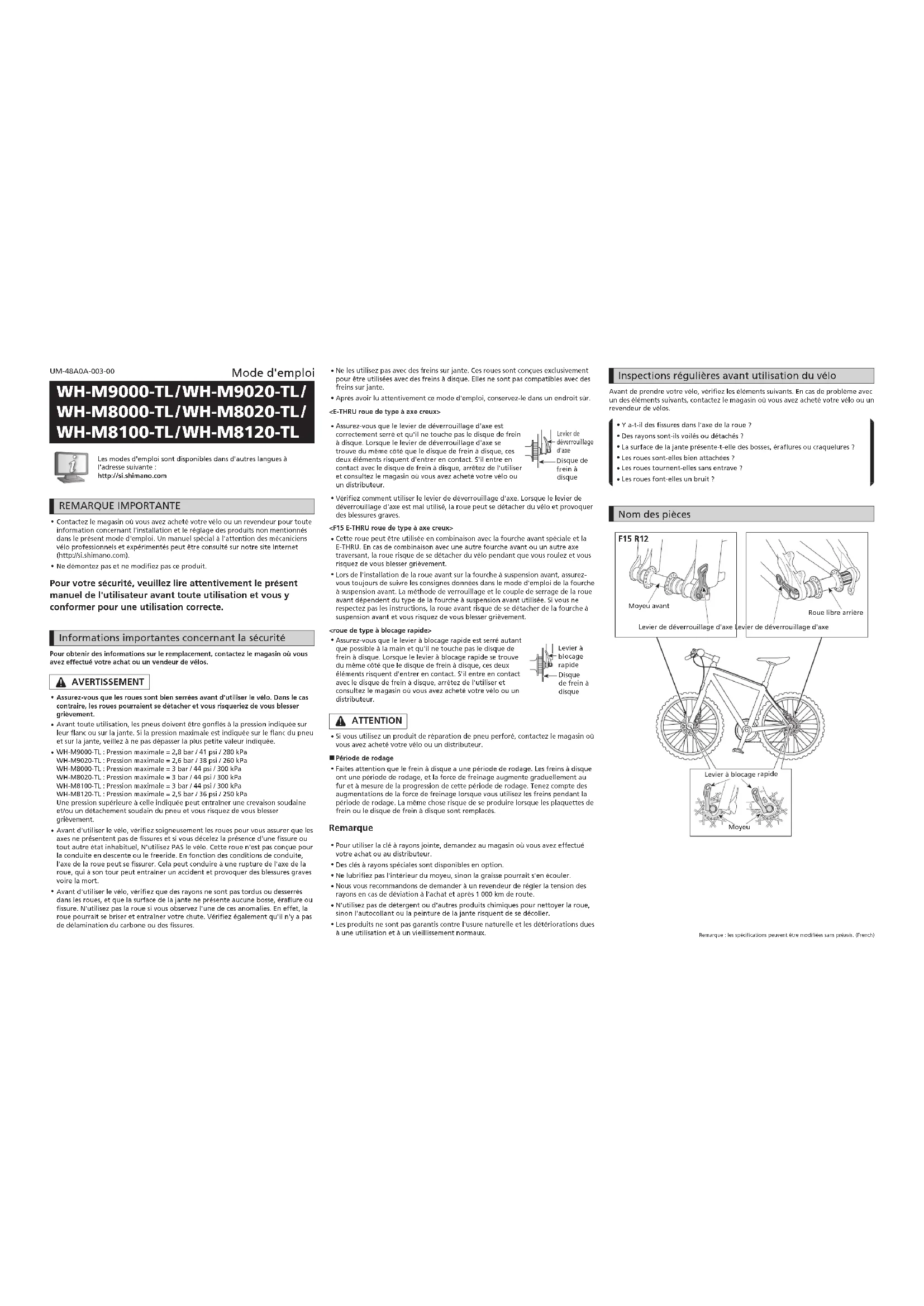 UM-48A0A-003-00 Mode d'emploi WH-M9000-TL / WH-M9020-TL / WH-M8000-TL / WH-M8020-TL / WH-M8100-TL / WH-M8120-TL Les modes d'emploi sont disponibles dans d'autres langues à l'adresse suivante:http://si.shimano.com REMARQUE IMPORTANTE