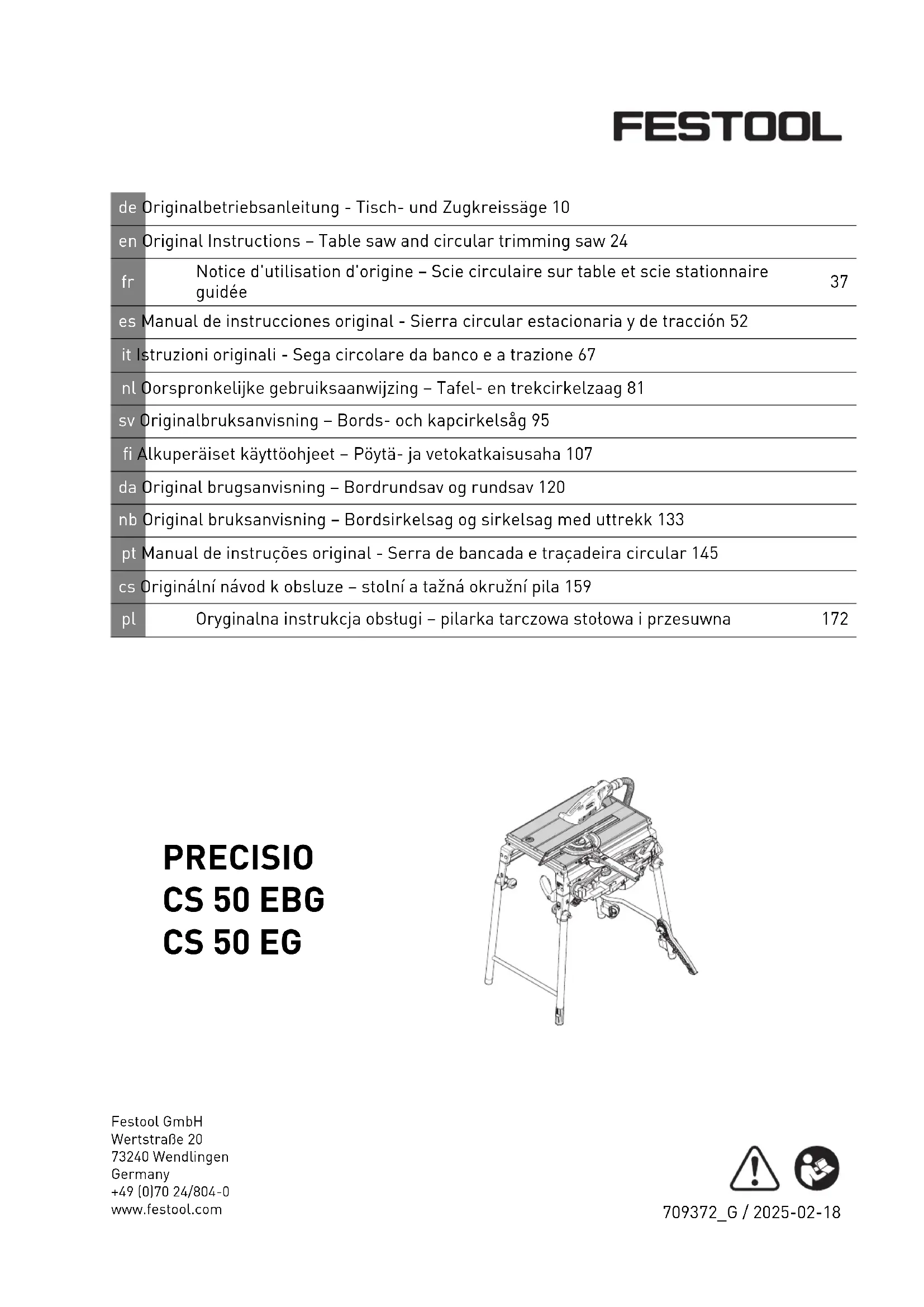 Retrouvez gratuitement la notice de l'appareil PRECISIO CS 50 EBG FESTOOL au format PDF.