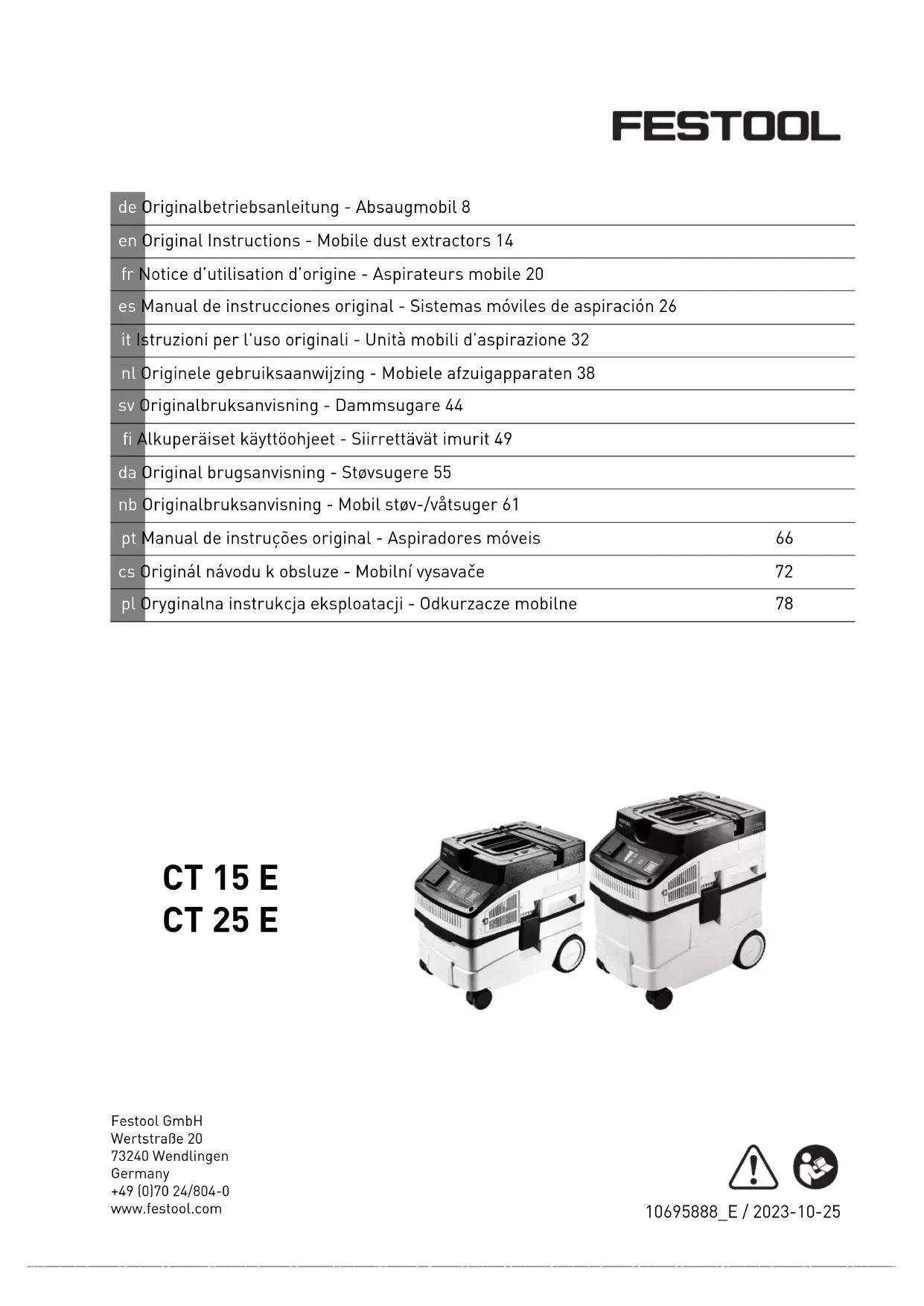 Retrouvez gratuitement la notice de l'appareil CT 15 E FESTOOL au format PDF.
