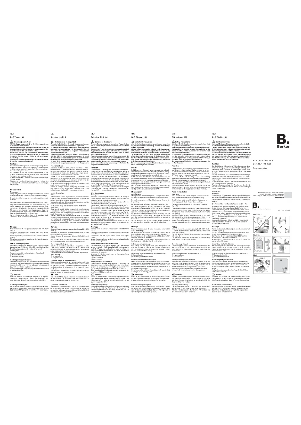 17839004 - Détecteur de mouvements BERKER - Notice d'utilisation et mode d'emploi gratuit