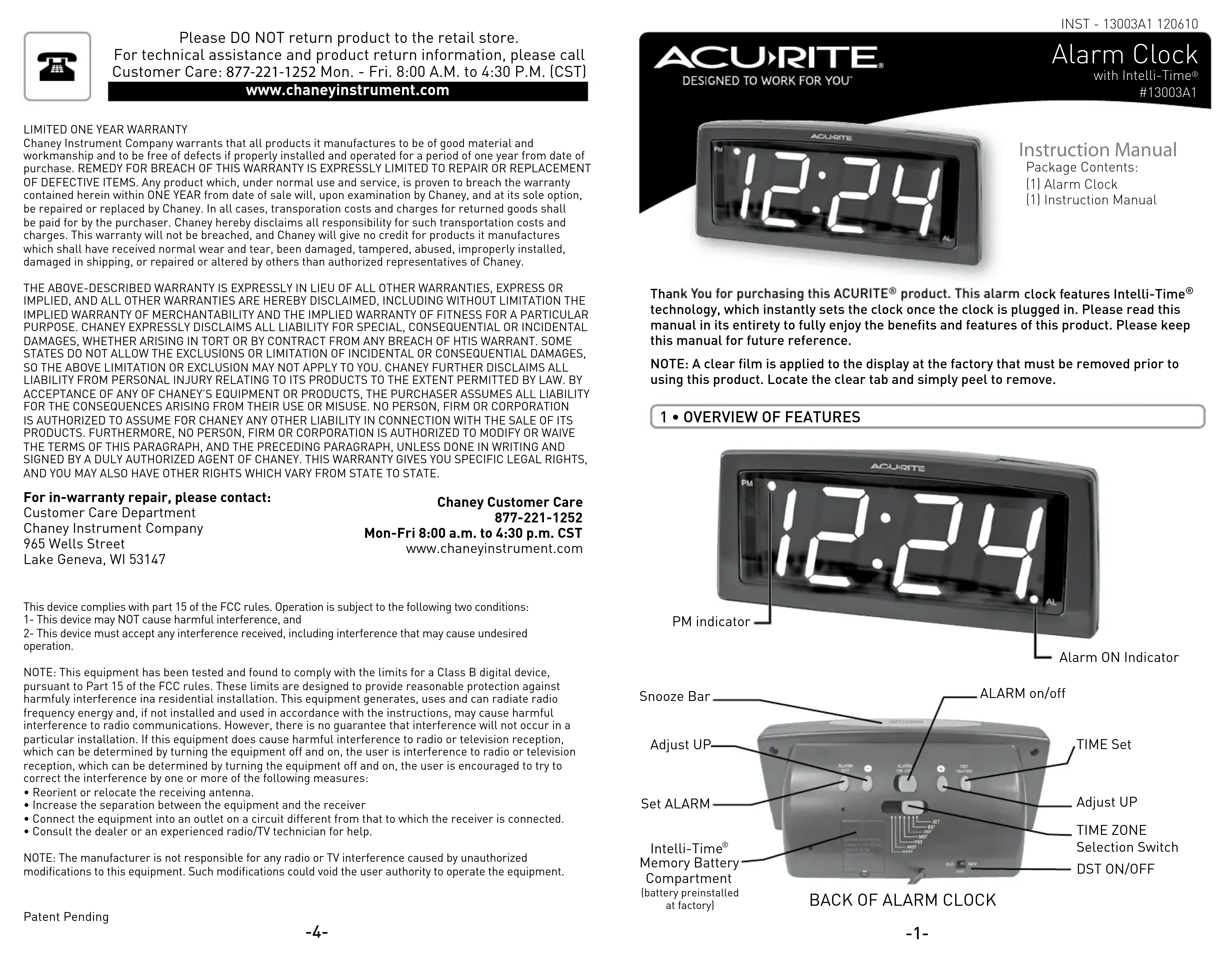 VEUILLEZ NE PAS RAPPORTER CE PRODUIT AU MAGASIN.POUR DU SOUTIEN TECHNIQUE ET DES RENSEIGNEMENTS SUR LE RETOUR DU PRODUIT,VEUILLEZ APPELER LE SERVICE À LA CLIENTÈLE: 877-221-1252 LUN AU VEN 8H00 À 16H30 (HNC) www.chaneyinstrument.com