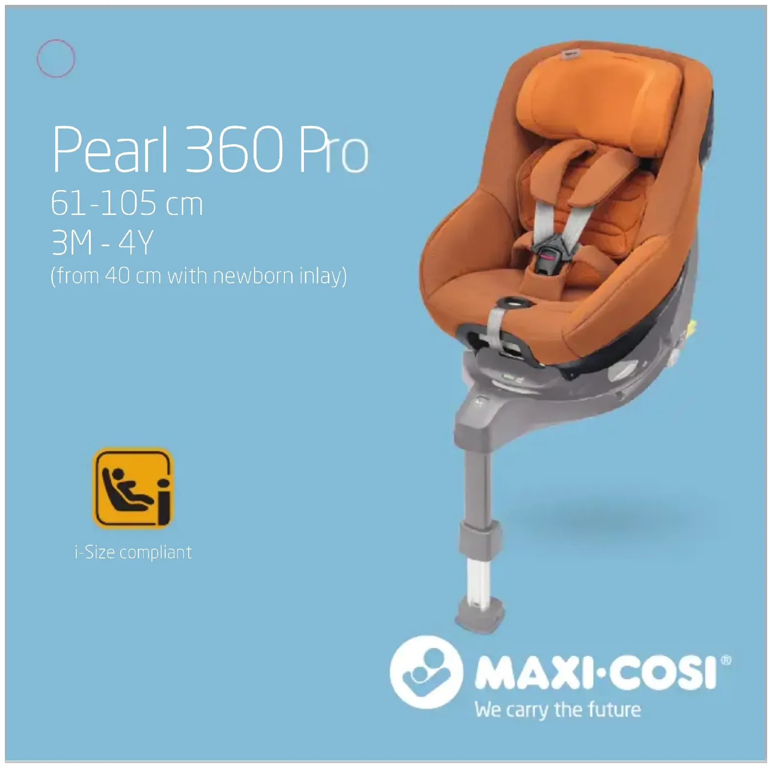 Le Pearl 360 Pro est un siège auto pour bébé/bambin conforme à la nouvelle réglementation européenne i-Size R129. i-Size vise à améliorer la sécurité des enfants en voiture en imposant le système d’installa- tion ISOFIX UNIVERSEL, en rendant la position dos à la route obligatoire jusqu’à 15 mois minimum, et en améliorant la protection de la tête et du cou de l’enfant. Ce siège pour bébé/bambin fait partie de la gamme 360°Pro qui ore une solution de mobilité complète de la naissance à environ 4 ans. Pour en savoir plus sur i-Size, rendez-vous sur le site www.maxi-cosi.com. Catégorie du siège auto : i-Size (61-105 cm, jusqu’à environ 4 ans) Position du siège auto : dos et face à la route