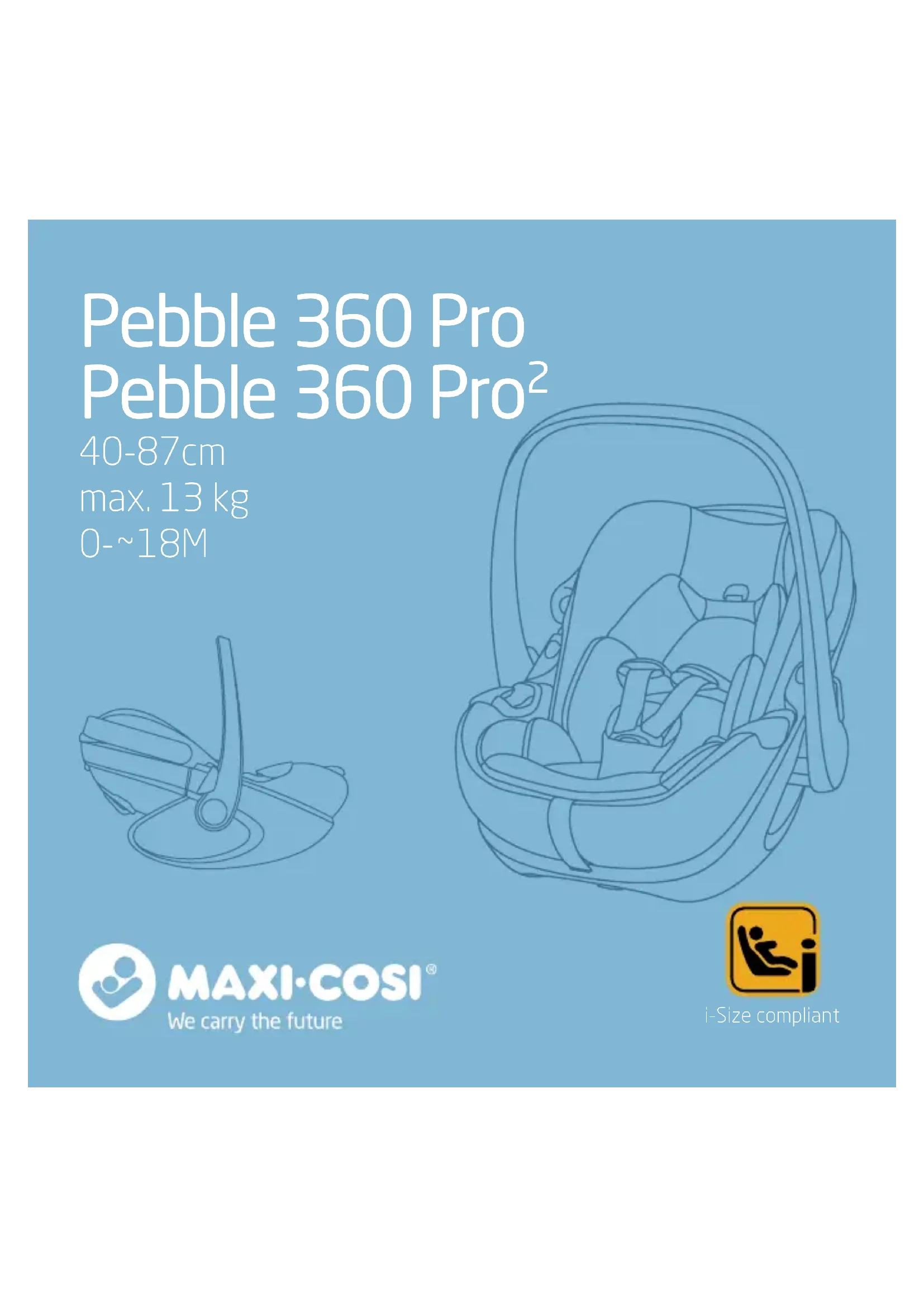 Le Pebble 360 Pro/Pro² est un dispositif de retenue « universel » ceinturé. Il est homologué suivant le règlement R129 ( i-Size) des Nations Unies pour une utilisation sur les places assises « universelles » d’un véhicule, conformément aux indications fournies par le constructeur automobile dans le manuel d’utilisation du véhicule. En cas de doute, contactez le fabricant ou le revendeur du dispositif de retenue pour enfants. Ce siège auto pour bébé fait partie de la gamme Family 360° qui ore une solution de mobilité complète de la naissance à environ 4 ans. Pour en savoir plus sur i-Size, rendez-vous sur le site www.maxi-cosi.com. Catégorie du siège auto : i-Size (40 cm-87 cm – jusqu’à environ 18 mois) Position du siège auto : dos à la route