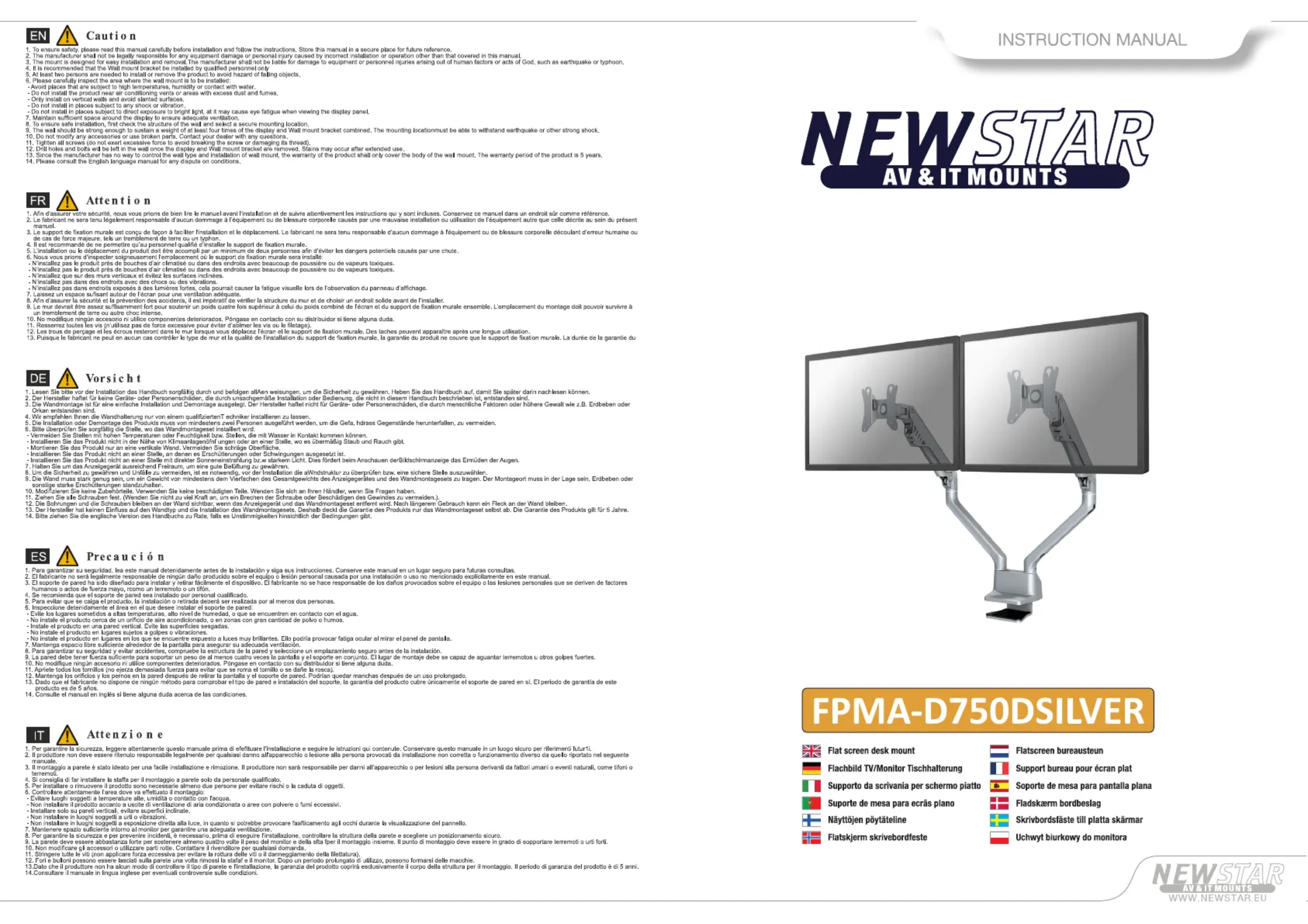 FPMAD750D - Support écran plat Newstar - Notice d'utilisation et mode d'emploi gratuit