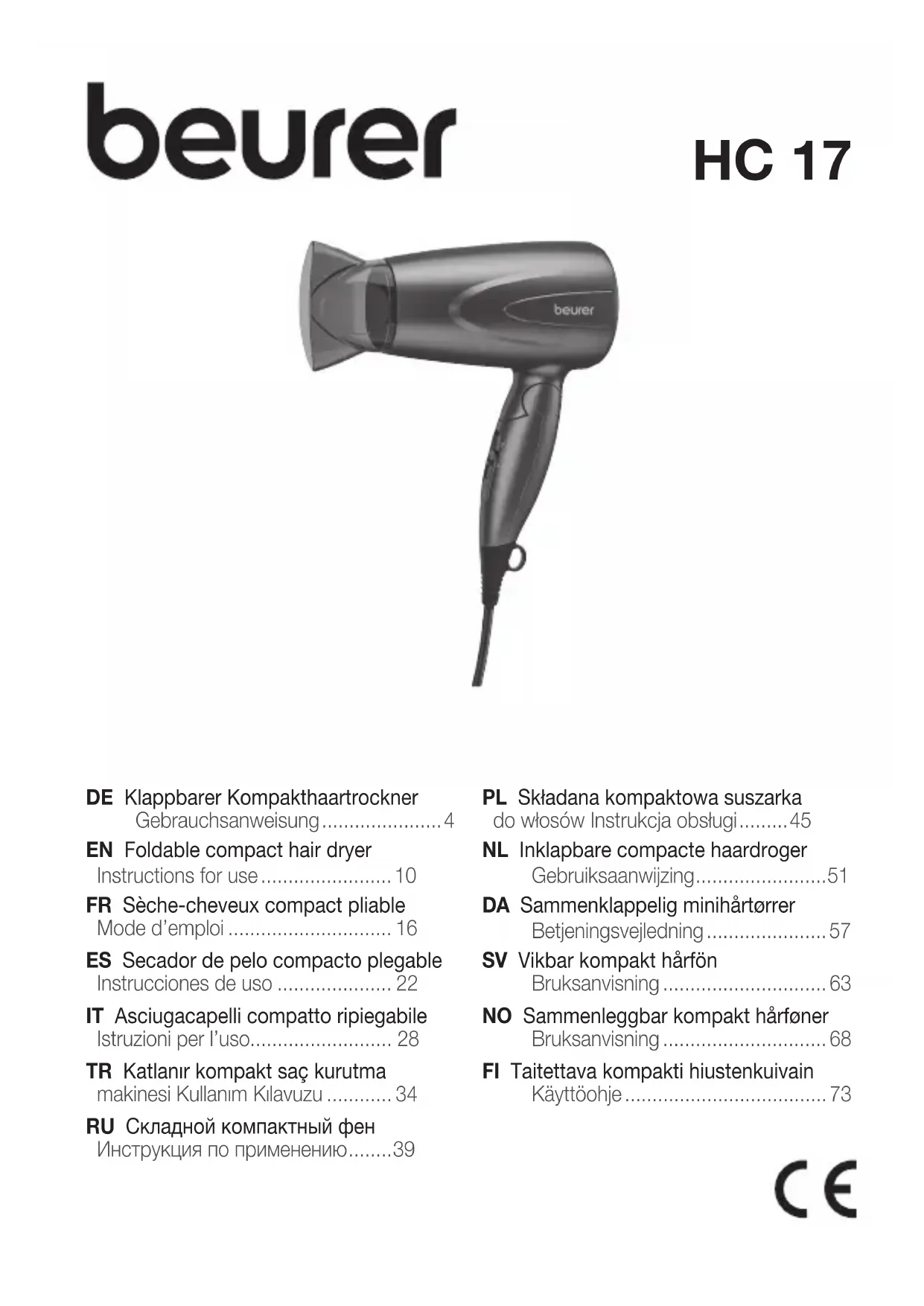 HC 17 - Sèche-cheveux BEURER - Notice d'utilisation et mode d'emploi gratuit