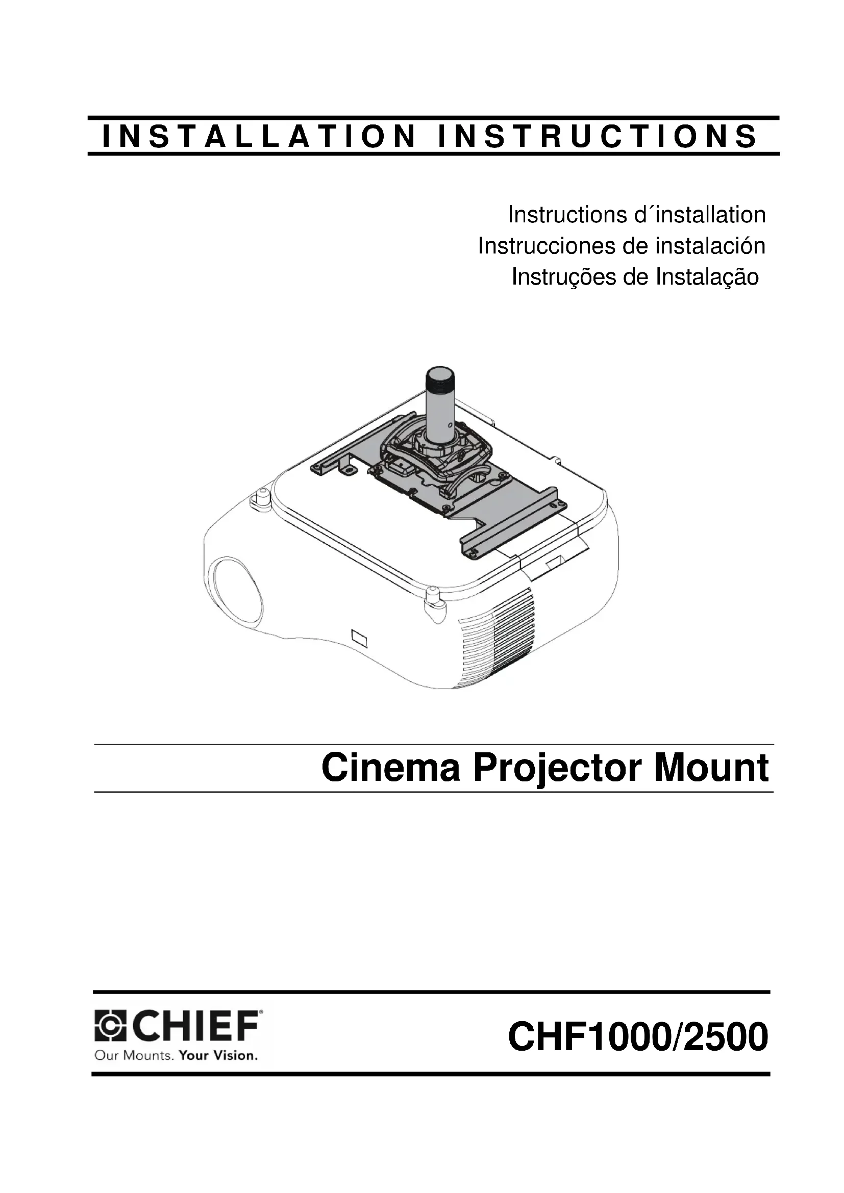 « bloquée » pour verrouiller le projecteur sur son support. 2cInstallation Instructions Cinema Projector Mount